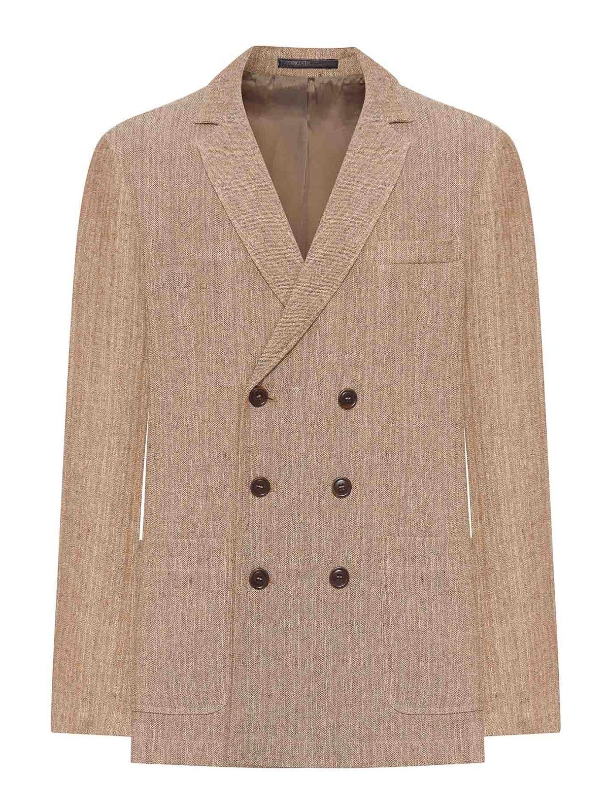 zweireihige Jacke, strukturierte Passform, breites Revers, doppelter Knopfverschluss auf der Vorderseite, aufgesetzte Fronttaschen, Brusttasche, strukturierte Schultern, gefüttert, reguläre Passform, 100% Leinen, Farbe: lila/leder