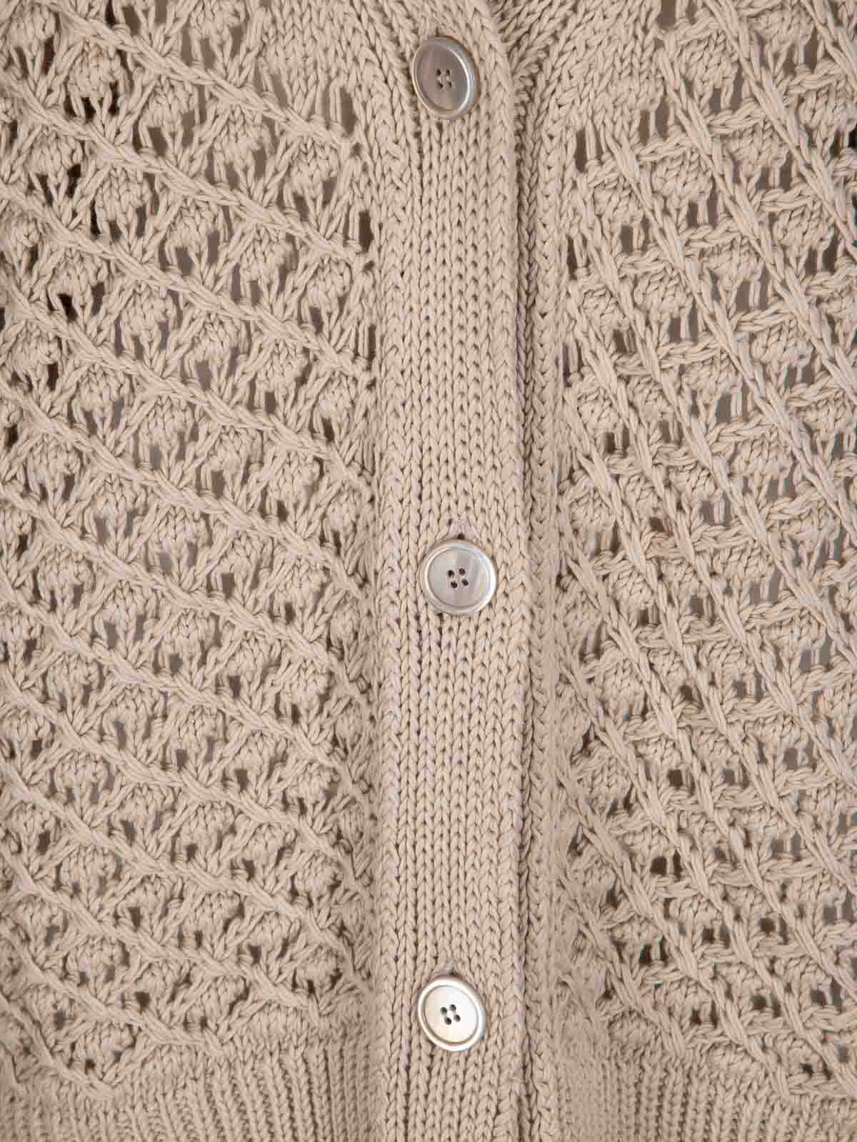 Strickjacke mit V-Ausschnitt, lange Ärmel, Knopfverschluss, lange Passform. Stricken.