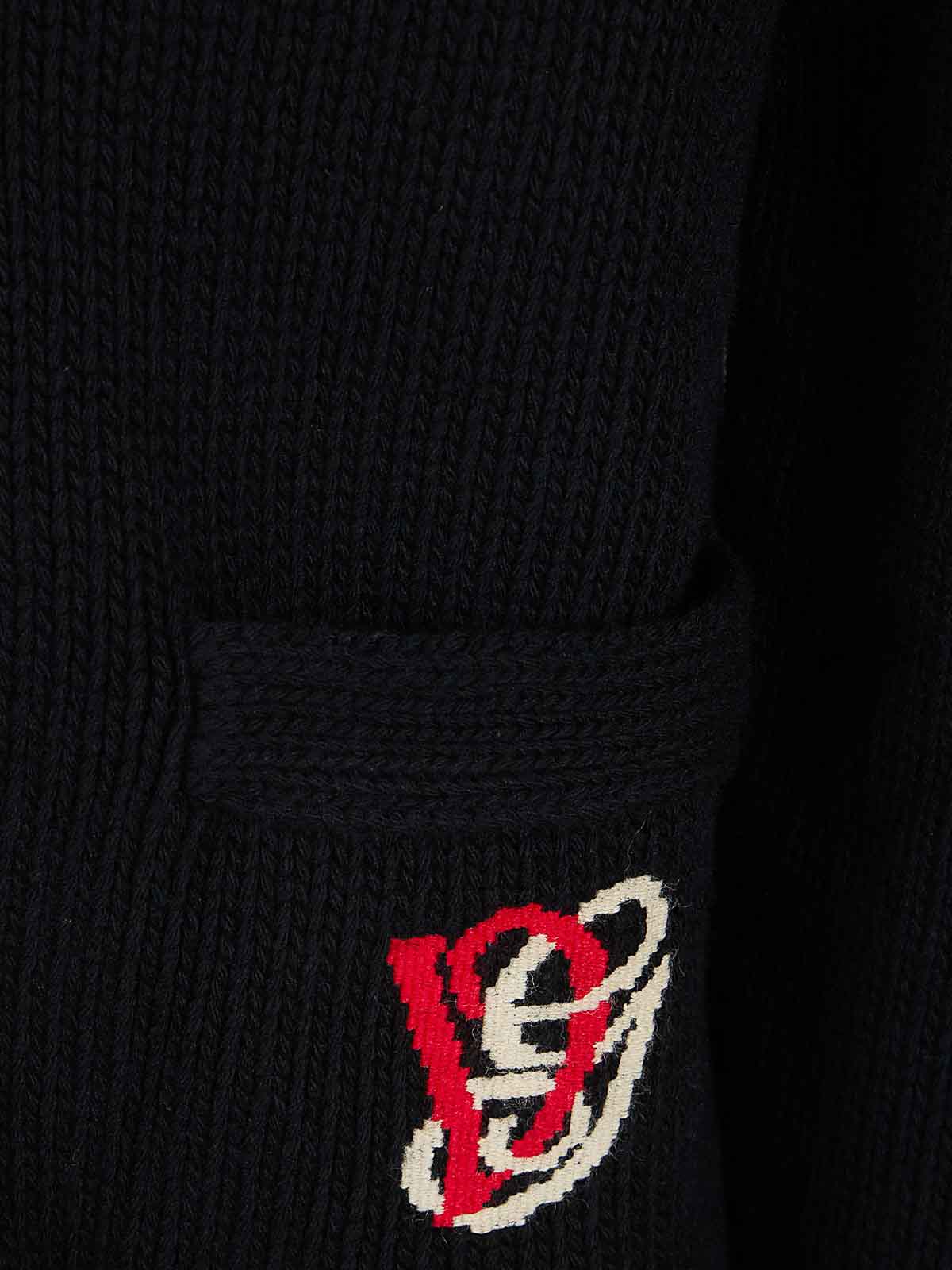 Wollcardigan von Valentino Garavani. Knopfverschluss auf der Vorderseite, Soft-Fit-Design. Kennzeichnend ist die VG-Stickerei auf der linken Vordertasche auf der abgenutzten Seite.