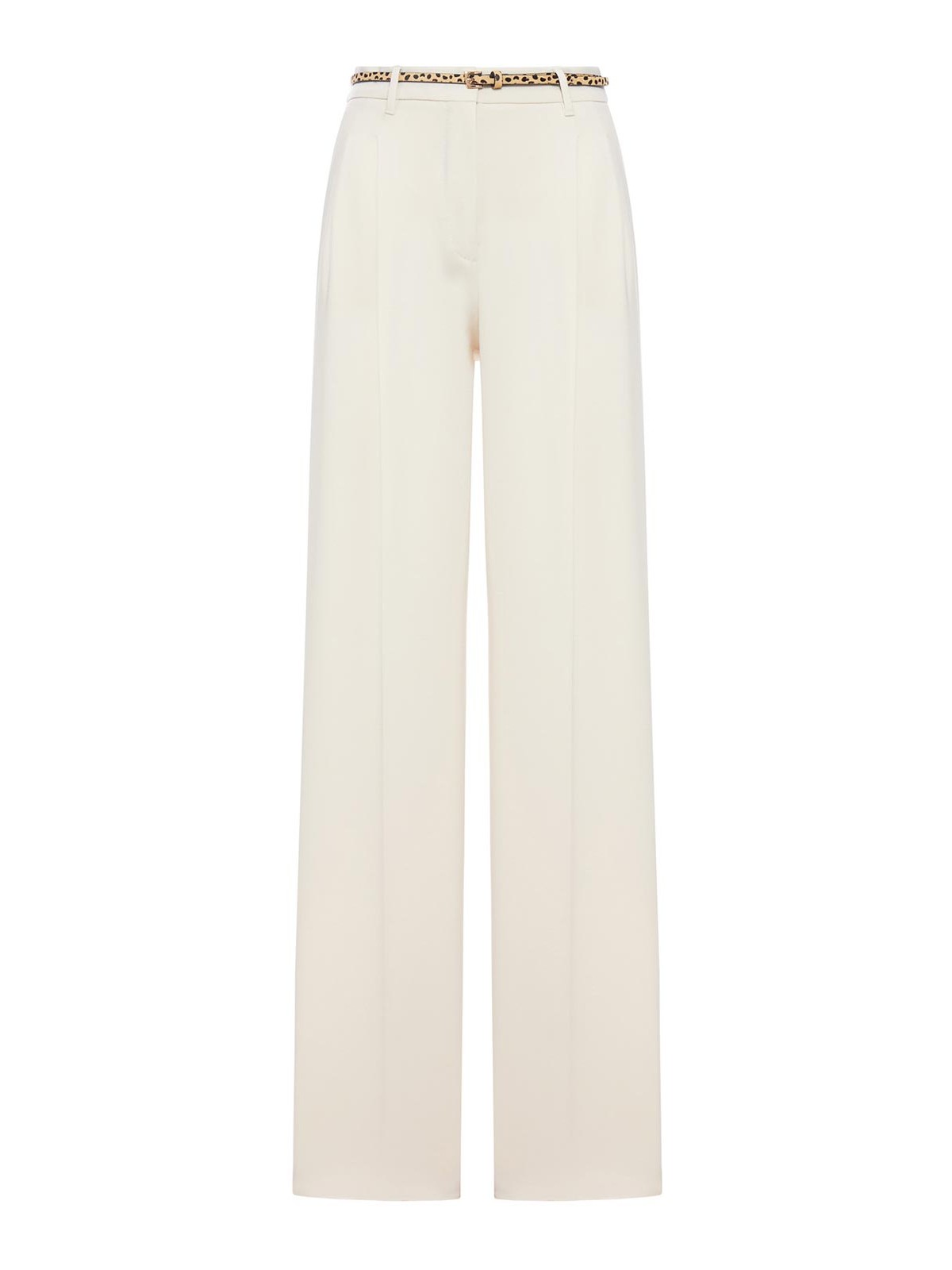 Cady-Hose, hohe Taille, Gürtelschlaufen und passender Gürtel aus Ponyleder, hoher Bund mit Reißverschluss und Klettverschluss, schräge Seitentaschen, mit taillierten Nähten veredelt, fließende Silhouette, weites Bein mit leicht taillierten Bündchen, Druckfalte und Abnäher, Farbe: Beige