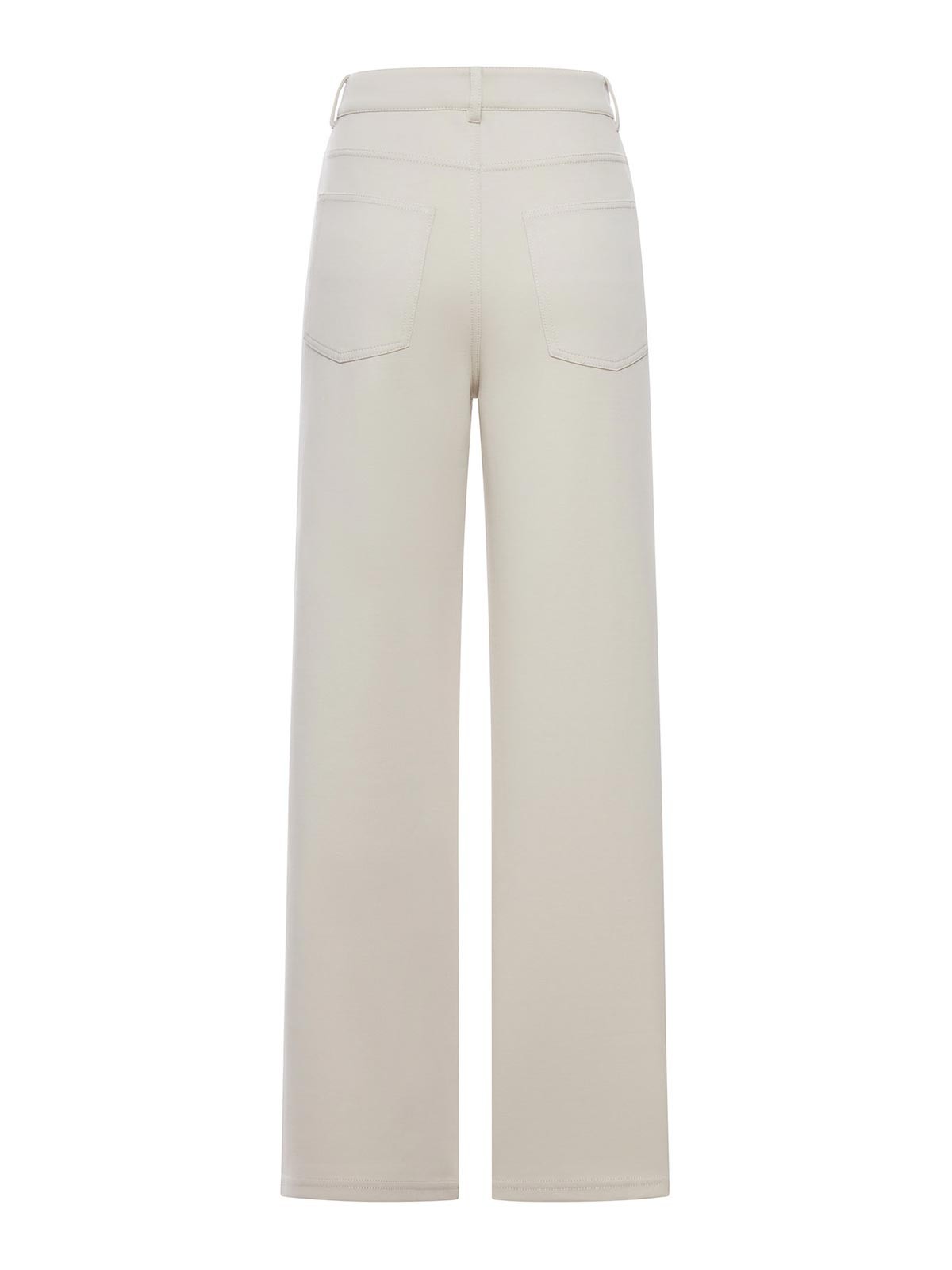 regulärer Bund, Gürtelschlaufen, Knopf auf der Vorderseite und verdeckter Reißverschluss, Fünf-Pocket-Design, abgerundete Fronttaschen, aufgesetzte Gesäßtaschen, farblich abgestimmte Nähte, weites Bein, gerades Bein, Saum mit dezenten Ziernähten, Baumwollmischung, Farbe: Beige