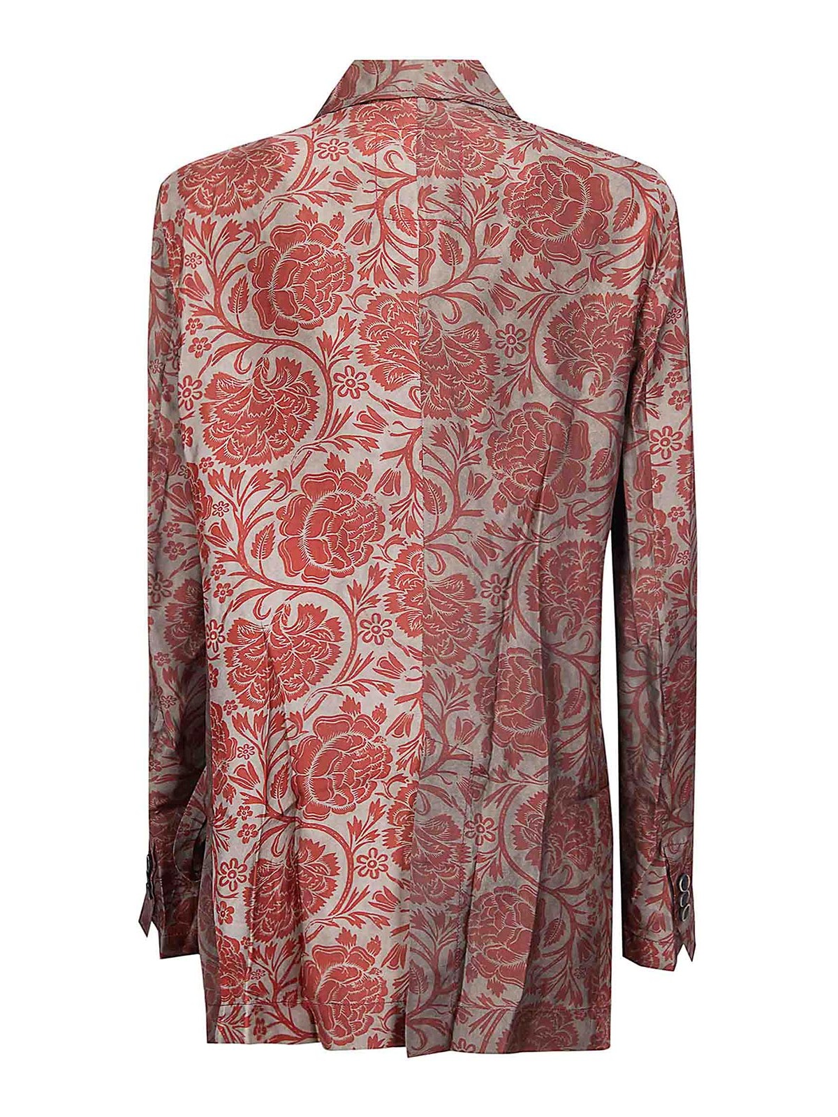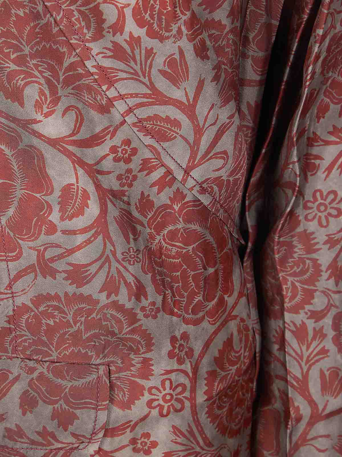 Cupro-Jacke mit Brieftaschenverschluss, Fronttasche, bequeme Passform, florale Textur.