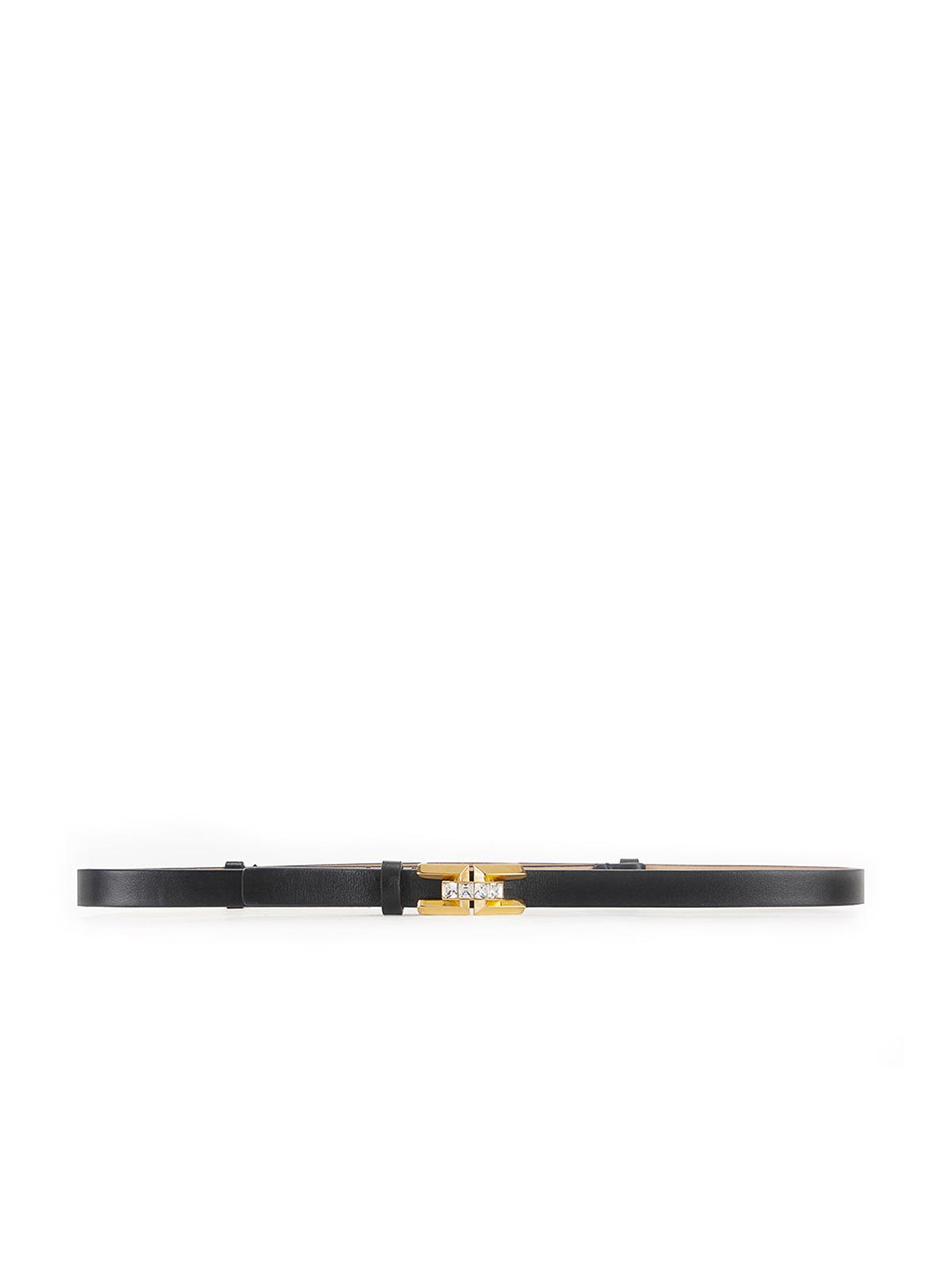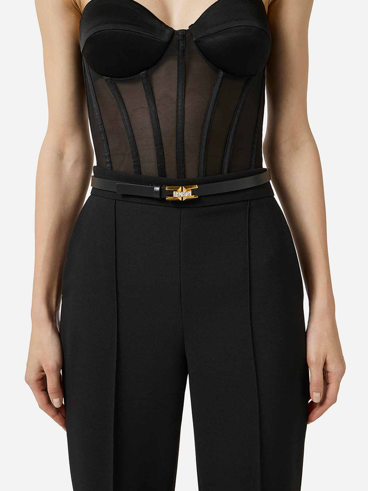 Elisabetta Franchi Ledergürtel aus Glattleder mit hoher Taille, verziert mit einer Schmuckplakette mit Logo und Strasssteinen auf der Vorderseite. Auf der Rückseite verstellbar.