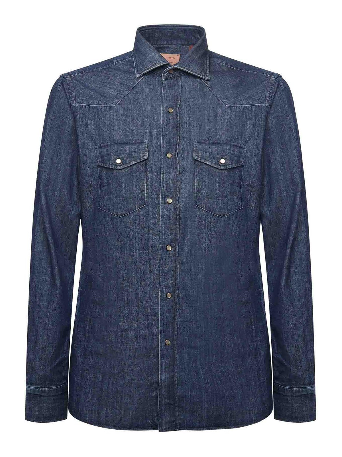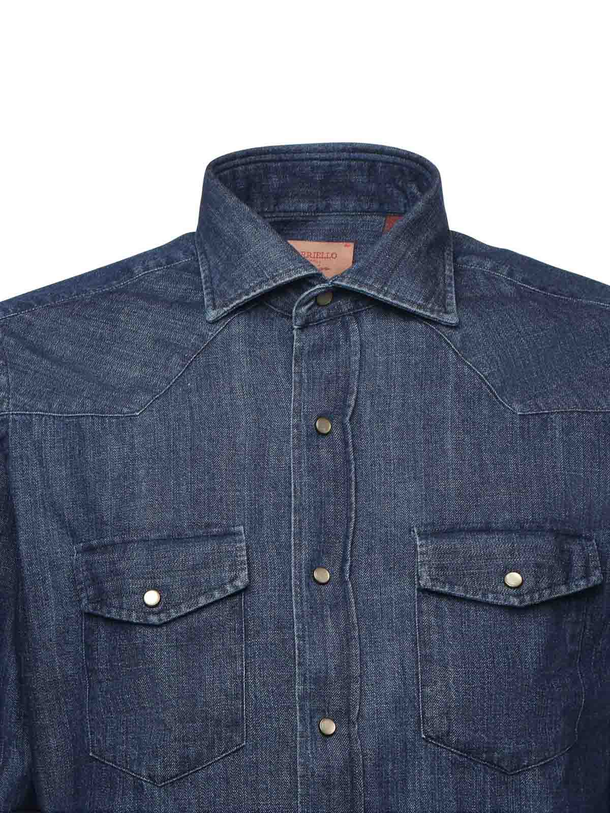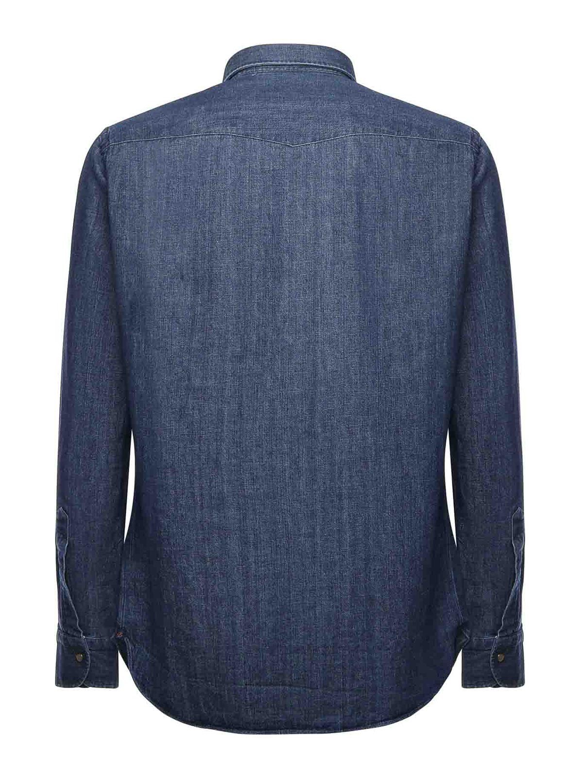 Hergestellt aus Baumwolldenim, Knopfverschluss auf der Vorderseite, zwei Brusttaschen, geknöpfte Manschetten, Hergestellt in Italien, reguläre Passform, die auf dem Foto abgebildete Größe ist 39, Farbe: blau