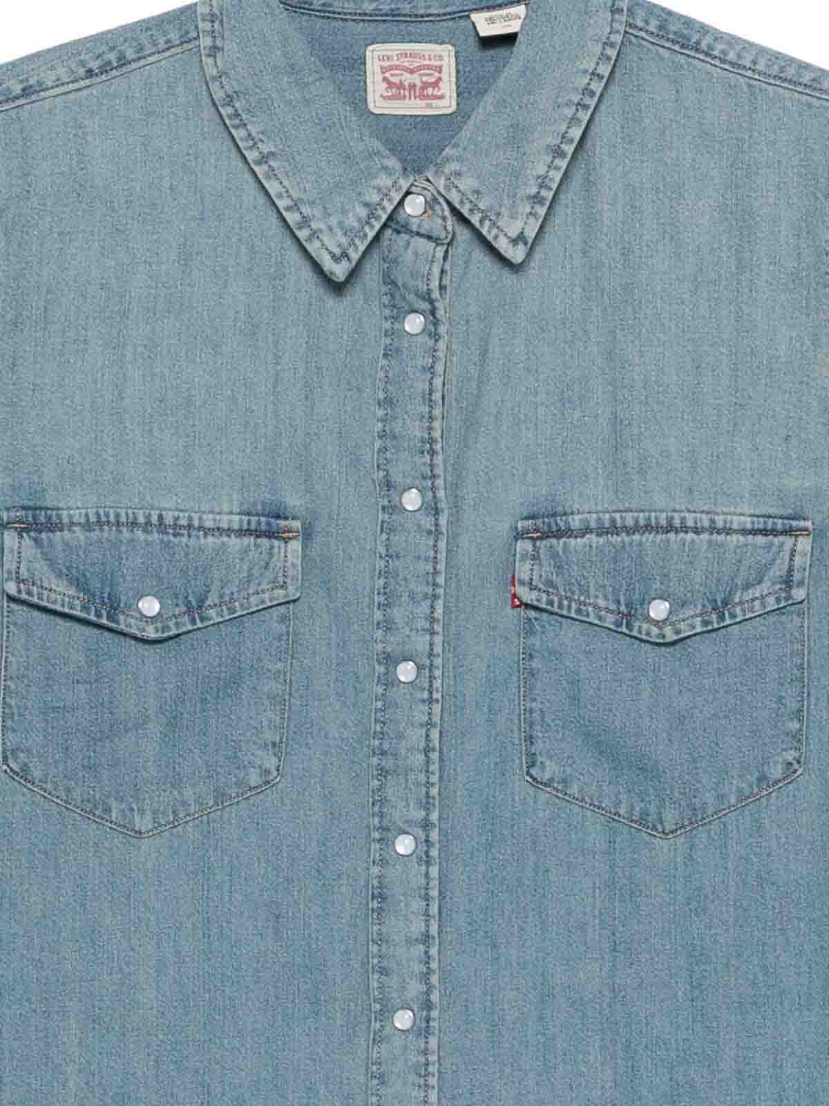 Langärmliges Jeanshemd von Levis mit Knopfverschluss und klassischem Kragen. Hergestellt aus strapazierfähiger, bequemer Jeansbaumwolle, kombiniert dieses Hemd lässigen Stil mit zeitloser Vielseitigkeit. Es ist ideal für den Alltag oder passt perfekt zu Jeans und Chinos für einen eleganten und doch entspannten Look