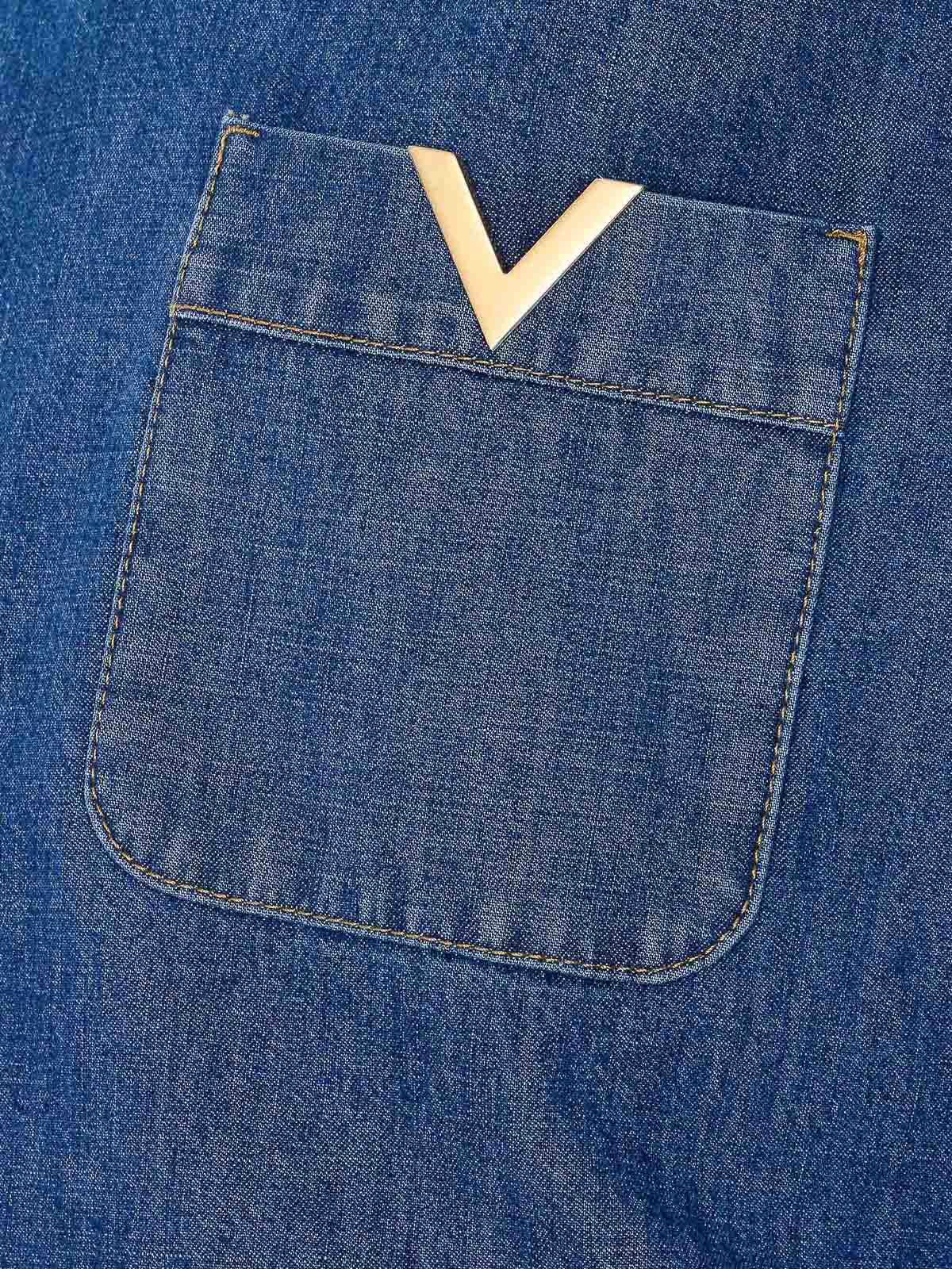 Valentino Garavani Jeanshemd, V-Ausschnitt, Langarm, Tasche mit Logo-Plakette