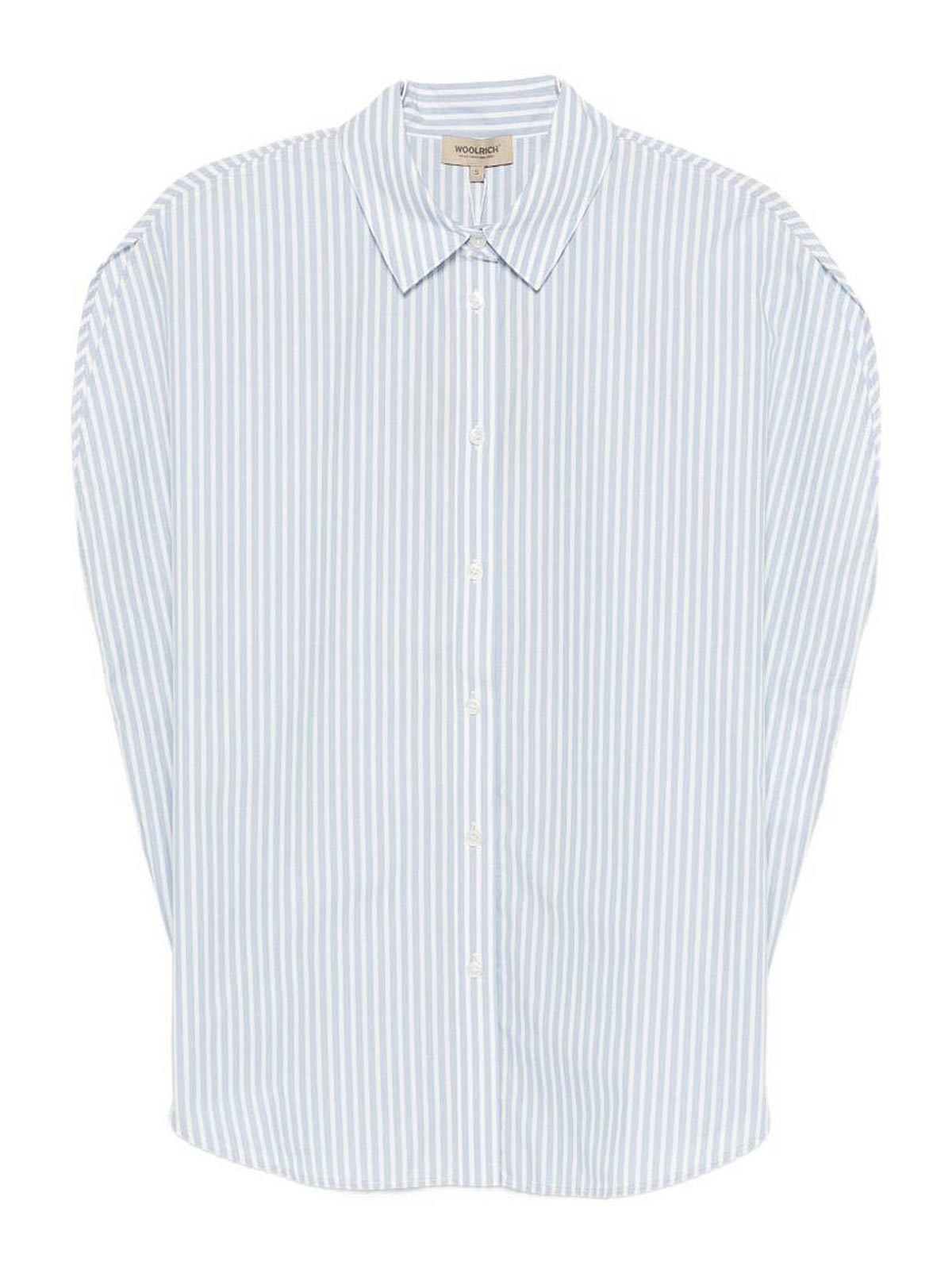 Klares blaues Streifenmuster, Knopfverschluss, spitzer Kragen, lange Ärmel, geknöpfte Manschetten