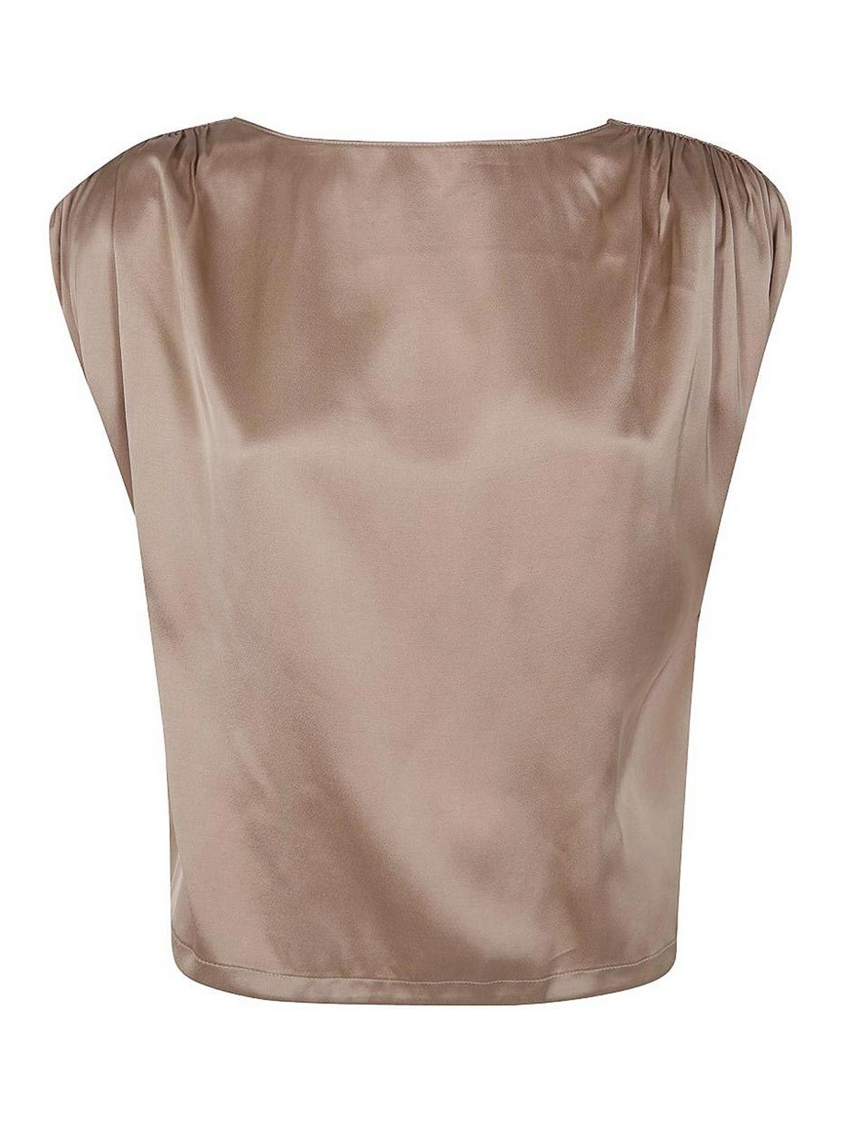 Mit braunem Rückenverschluss mit Knoten, U-Boot-Ausschnitt, ärmellos, Zusammensetzung aus 100% Viskose.