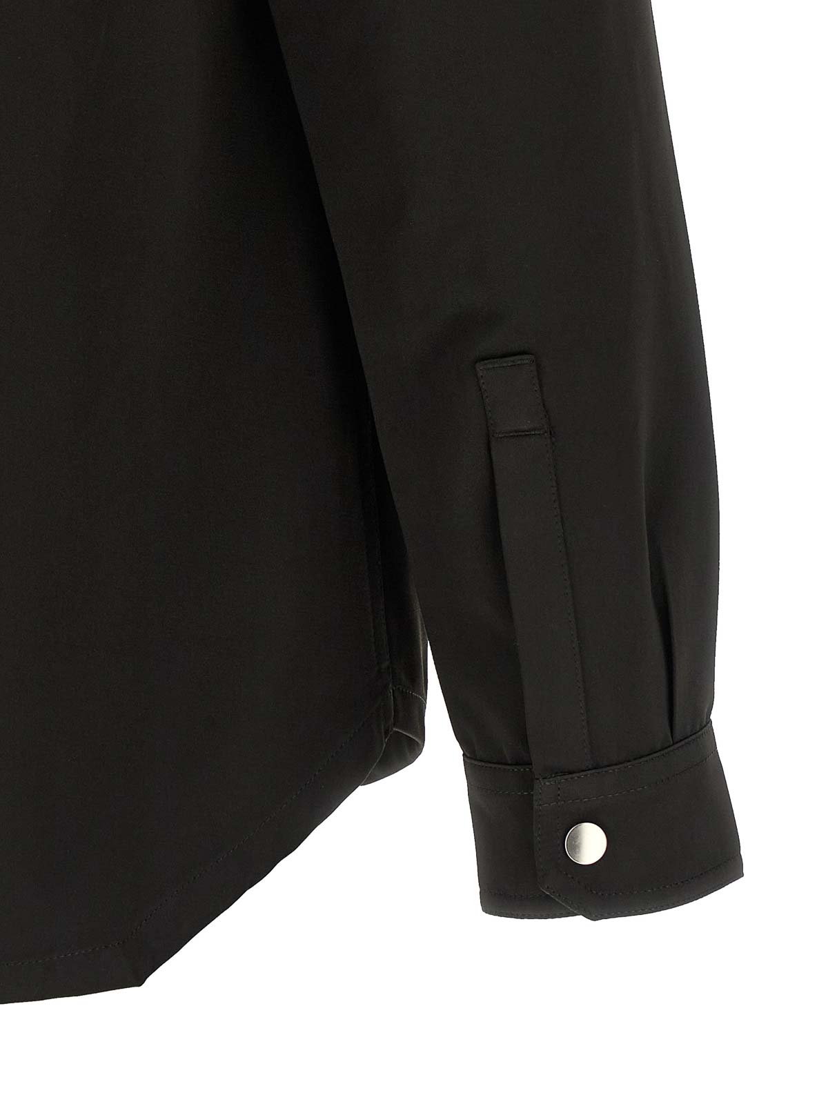Oberhemd aus technischem Gewebe in Satinoptik mit Druckknopfverschluss auf der Vorderseite, Taschen, langen Manschettenärmeln und farblich abgestimmtem Baumwollbanddetail auf der Rückseite.