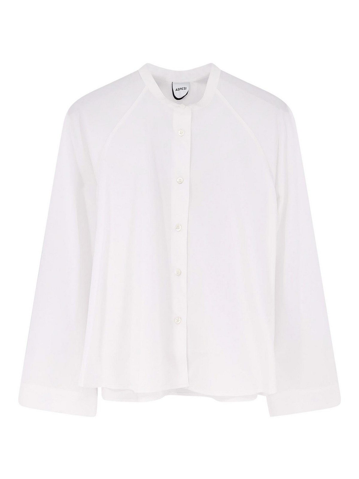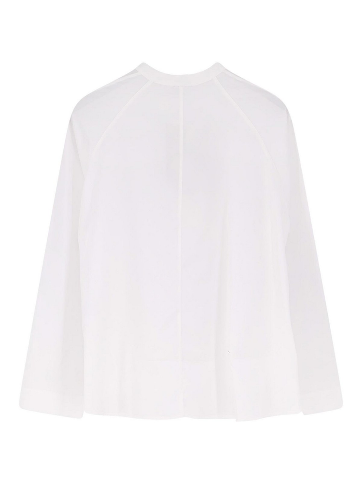 Rundhalsausschnitt, Knopfverschluss, lange Ärmel, kurz geschnitten, 100% Baumwolle.