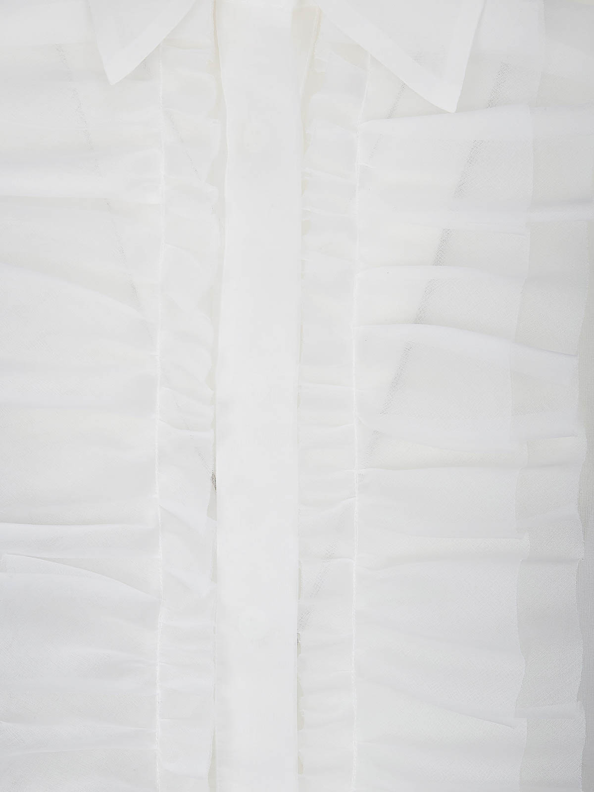 Ärmelloses transparentes Seidenhemd, Frontdetail, reguläre Passform, elegantes Design.