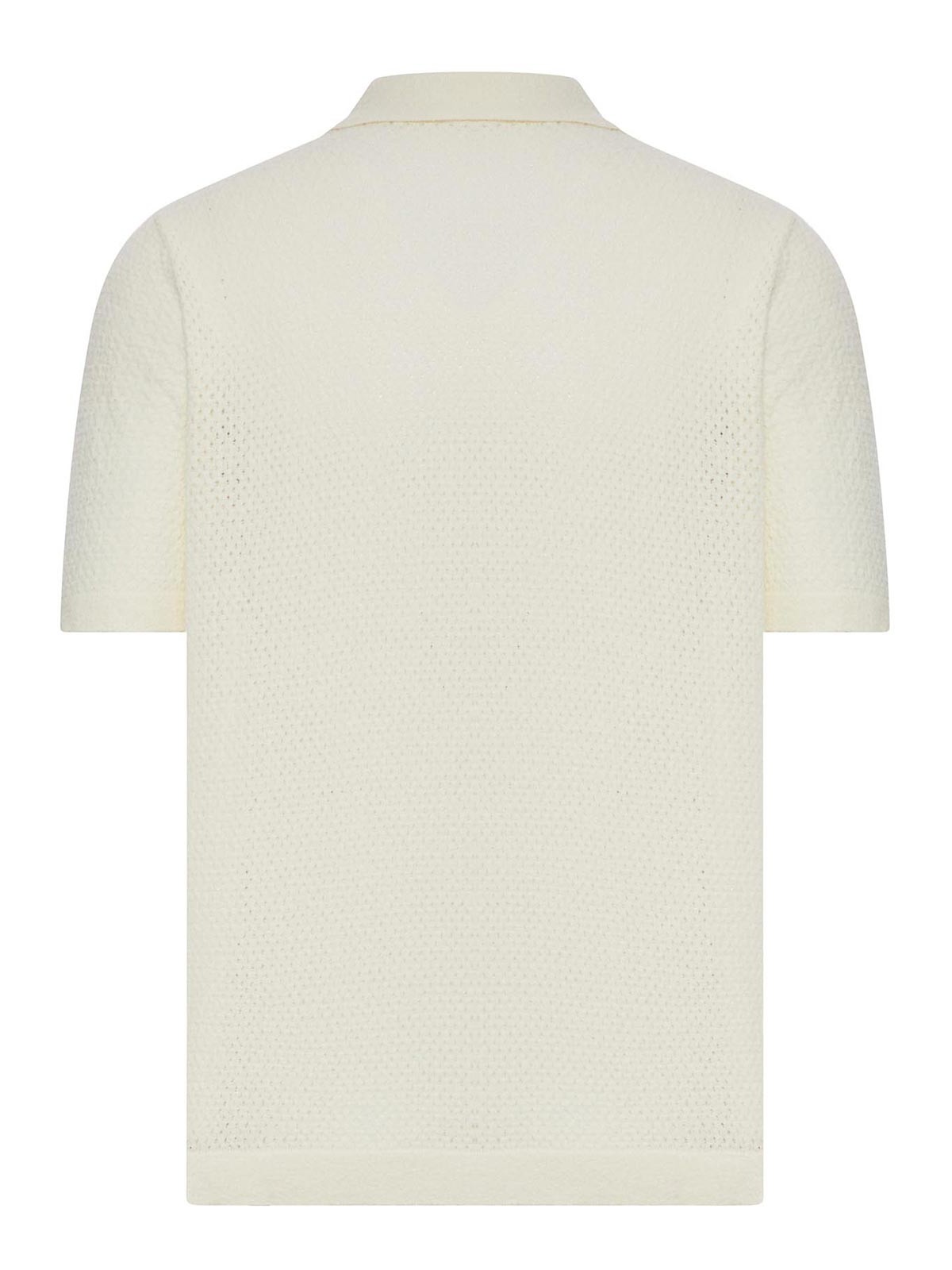 leichtes perforiertes Strickhemd, klassischer Spitzkragen, Frontverschluss mit farblich abgestimmten Knöpfen, kurze Ärmel, durchgehende Mikroperforation, normale Schultern, gerader Saum mit abgeschlossener Kante, reguläre Passform, Farbe: weiß