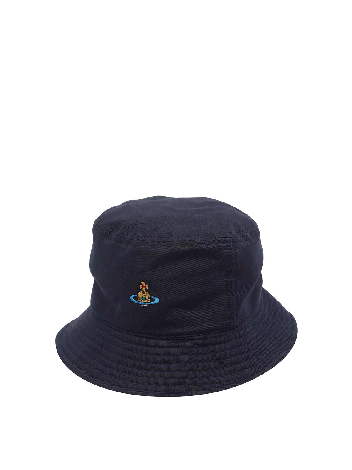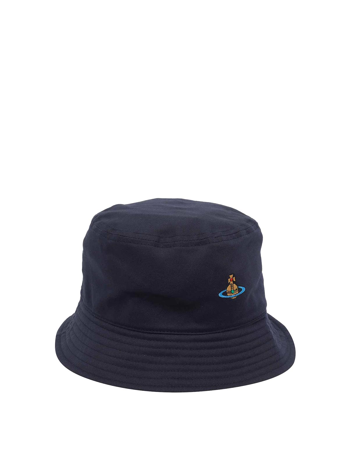 Blauer Orb-Fischerhut von Vivienne Westwood, gesticktes Orb-Logo auf der Vorderseite