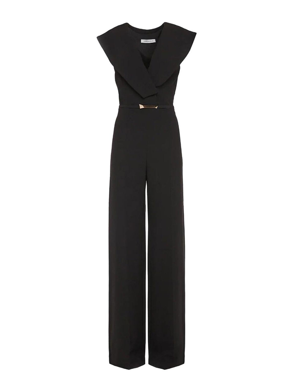 Simona Corselli Jumpsuit aus Cady-Stoff mit weitem Halsausschnitt und geradem Bein, bedeckter Gürtel mit goldener Schnalle.