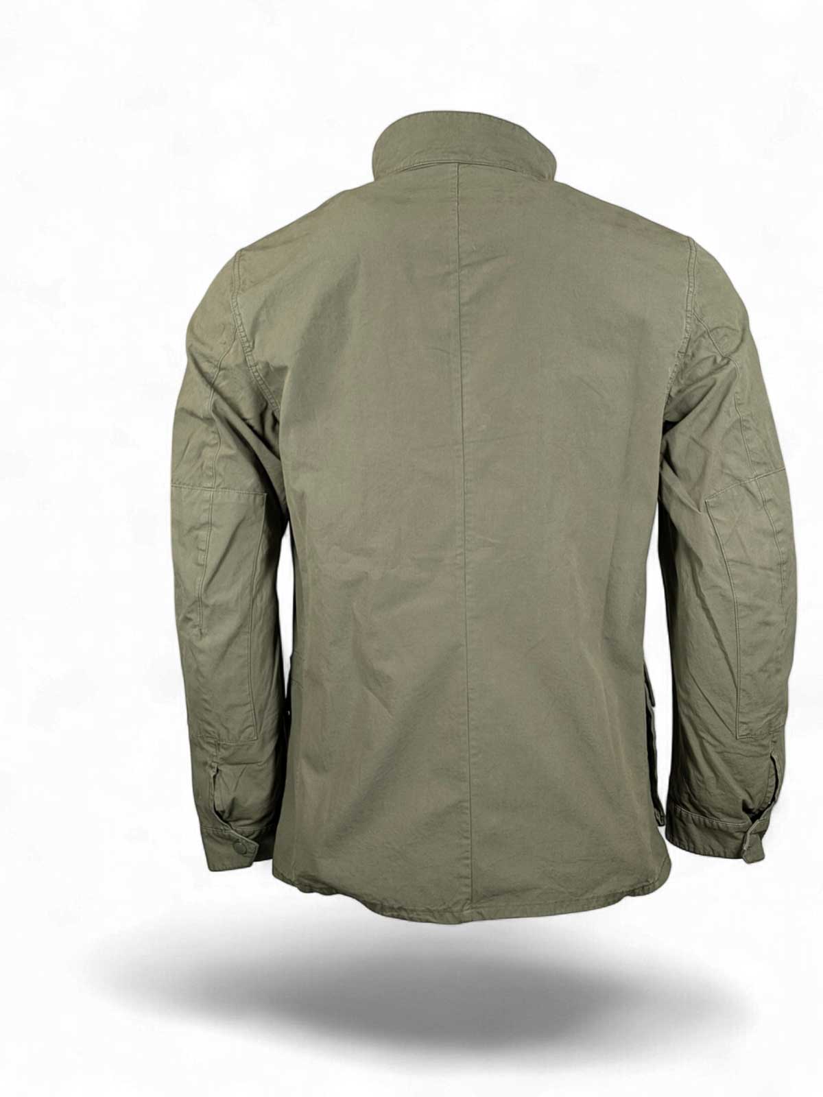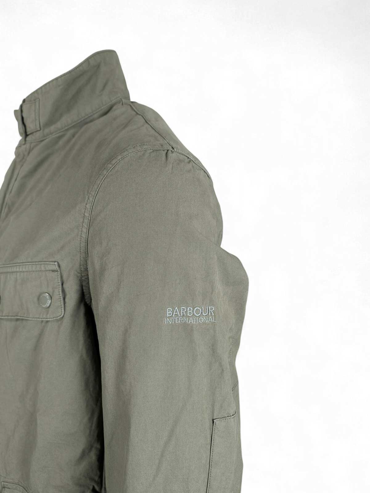 Barbour International, Duke, kleidungsgefärbte Freizeitjacke, Grün, Duke-Jacke mit einem ikonischen und modernen Charakter, eines der repräsentativsten Modelle der Barbour International Kollektion. Diese Oberbekleidung kombiniert traditionelle Ästhetik und moderne Funktionalität und ist somit perfekt, um lässige und urbane Looks mit einem starken Stil zu vervollständigen. Die Jacke besteht aus Baumwolle und ist gefärbt, um einen authentischen Trageeffekt zu erzielen. Sie hat eine leicht schmale Passform, die die Silhouette betont. Das Modell verfügt über einen Stehkragen mit Kinnriemen und Druckknöpfen, einen Frontreißverschluss, der durch eine winddichte Klappe geschützt ist, und mehrere funktionale Taschen, die Funktionalität und Design kombinieren., Stehkragen mit Kinnriemen und Druckknöpfen, Frontreißverschluss und winddichte Klappe, obere Leistentaschen, untere Balgtaschen mit Boxfalte und Doppelfalte Öffnung, internationale Barbour-Stickerei auf dem linken Ärmel, garmentgefärbte Behandlung für eine abgenutzter Effekt.
