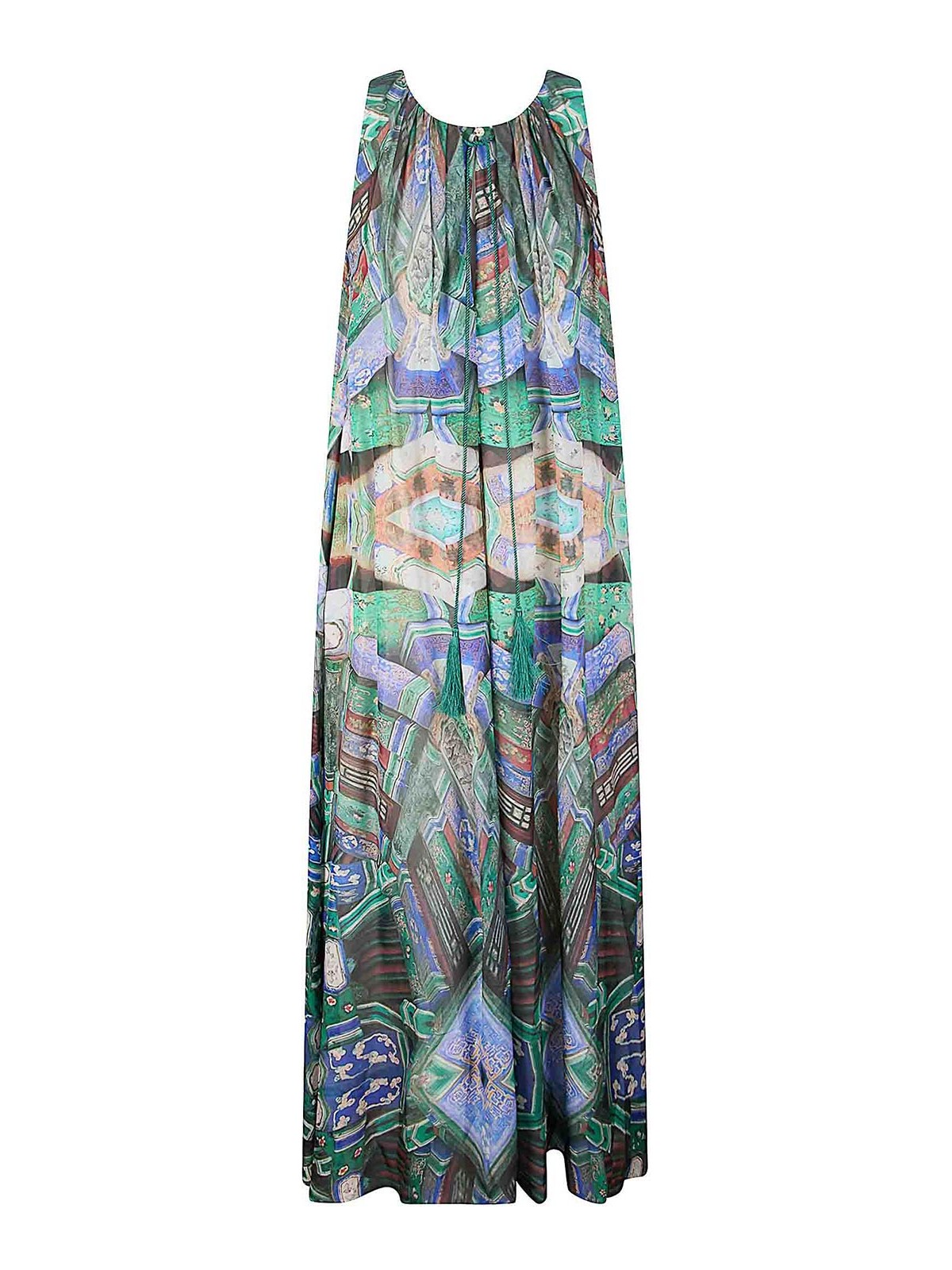 Langes Seidenkleid mit Vorderausschnitt und Knopfverschluss, leichter Slip.