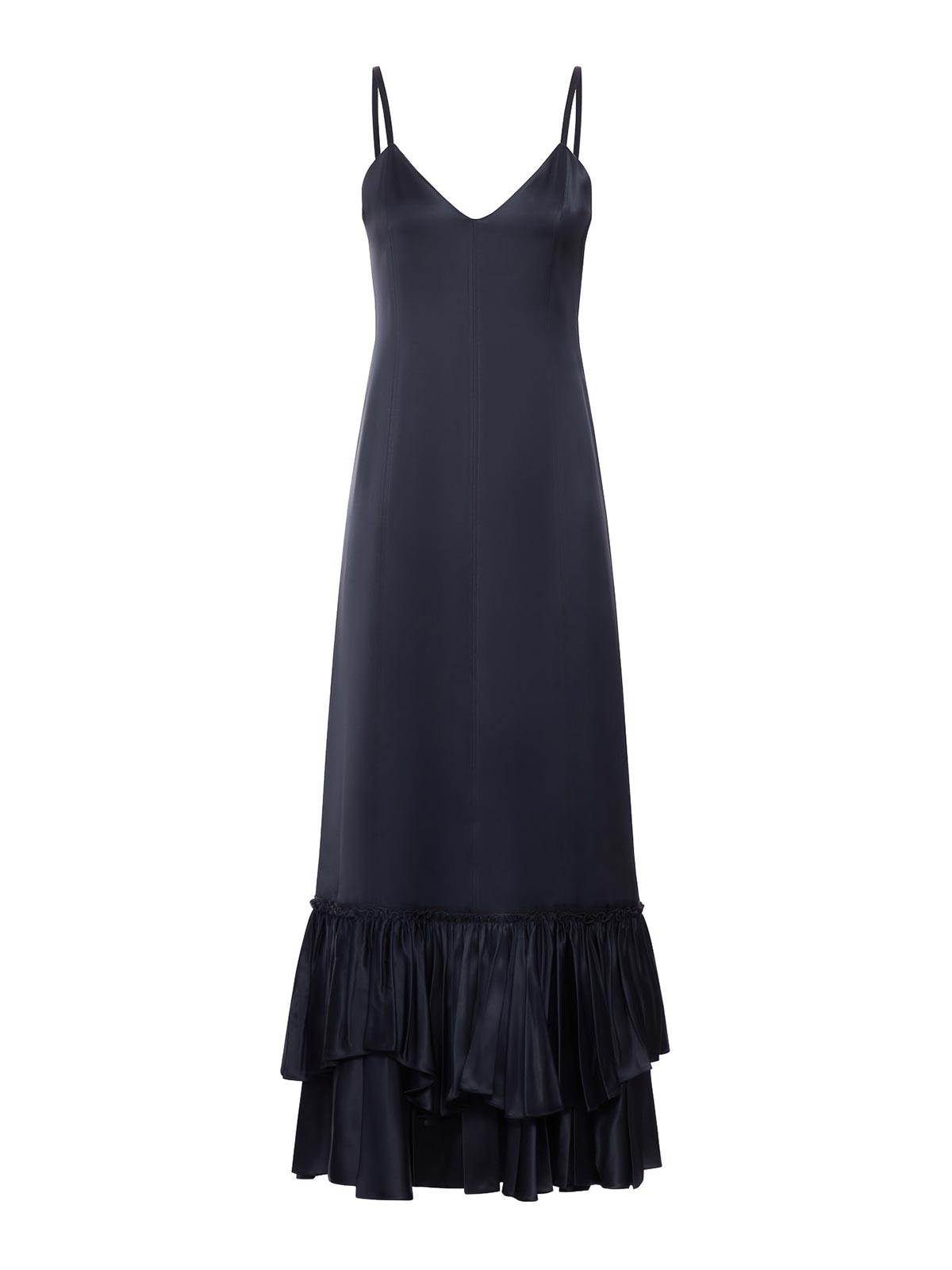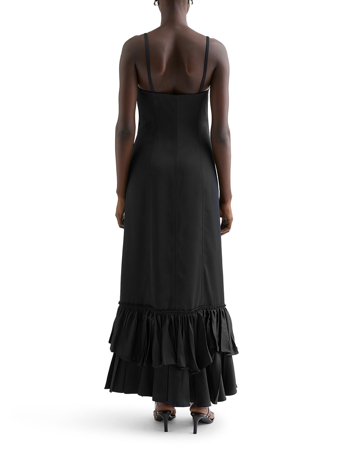 lockere, lange Passform, breiter V-Ausschnitt, dünne Schulterriemen, seitlicher Reißverschluss, Viskosefutter, Seidenmischgewebe, das Model ist 177cm/5`9 groß und trägt Größe 34 de, Farbe: schwarz