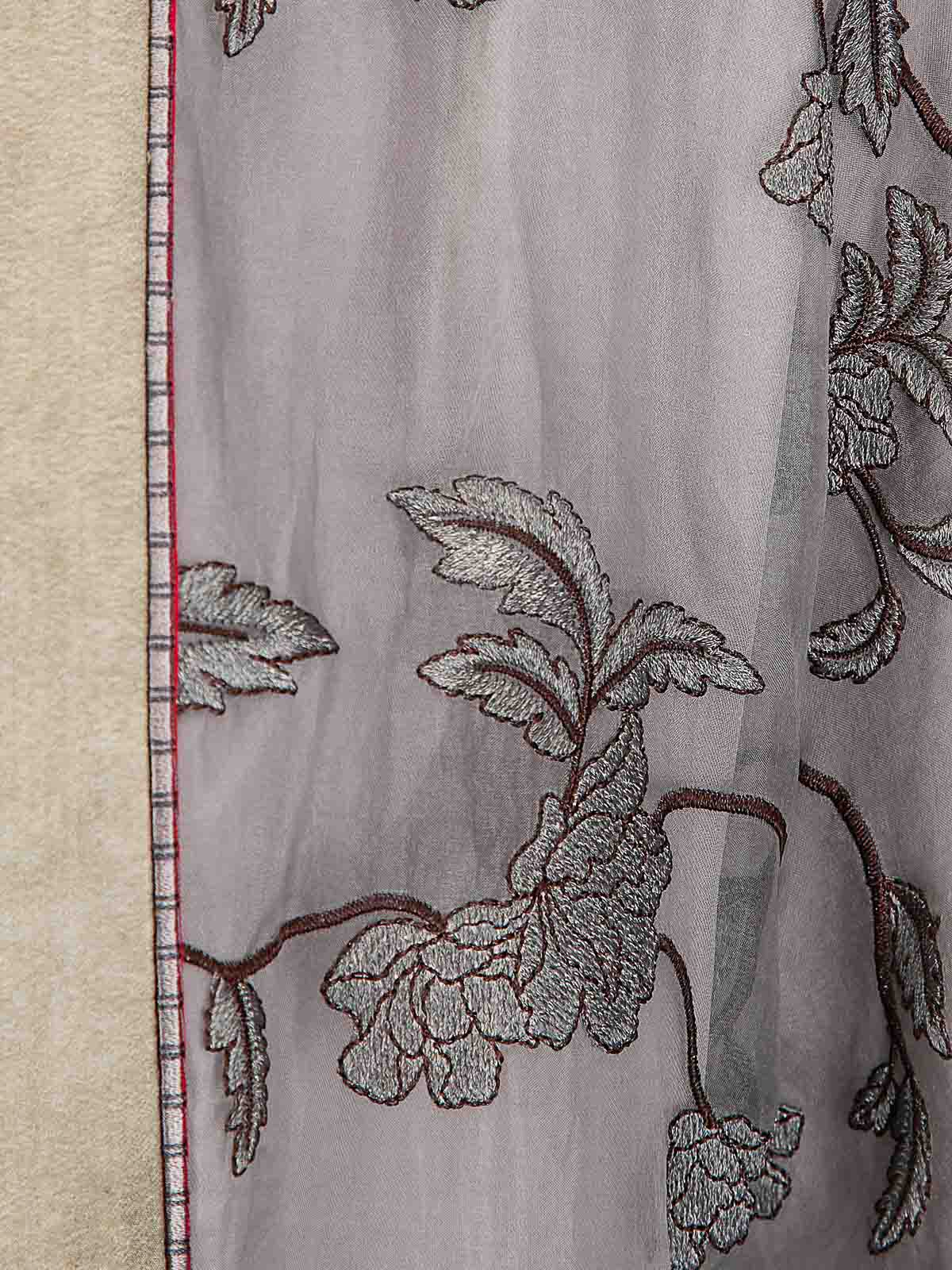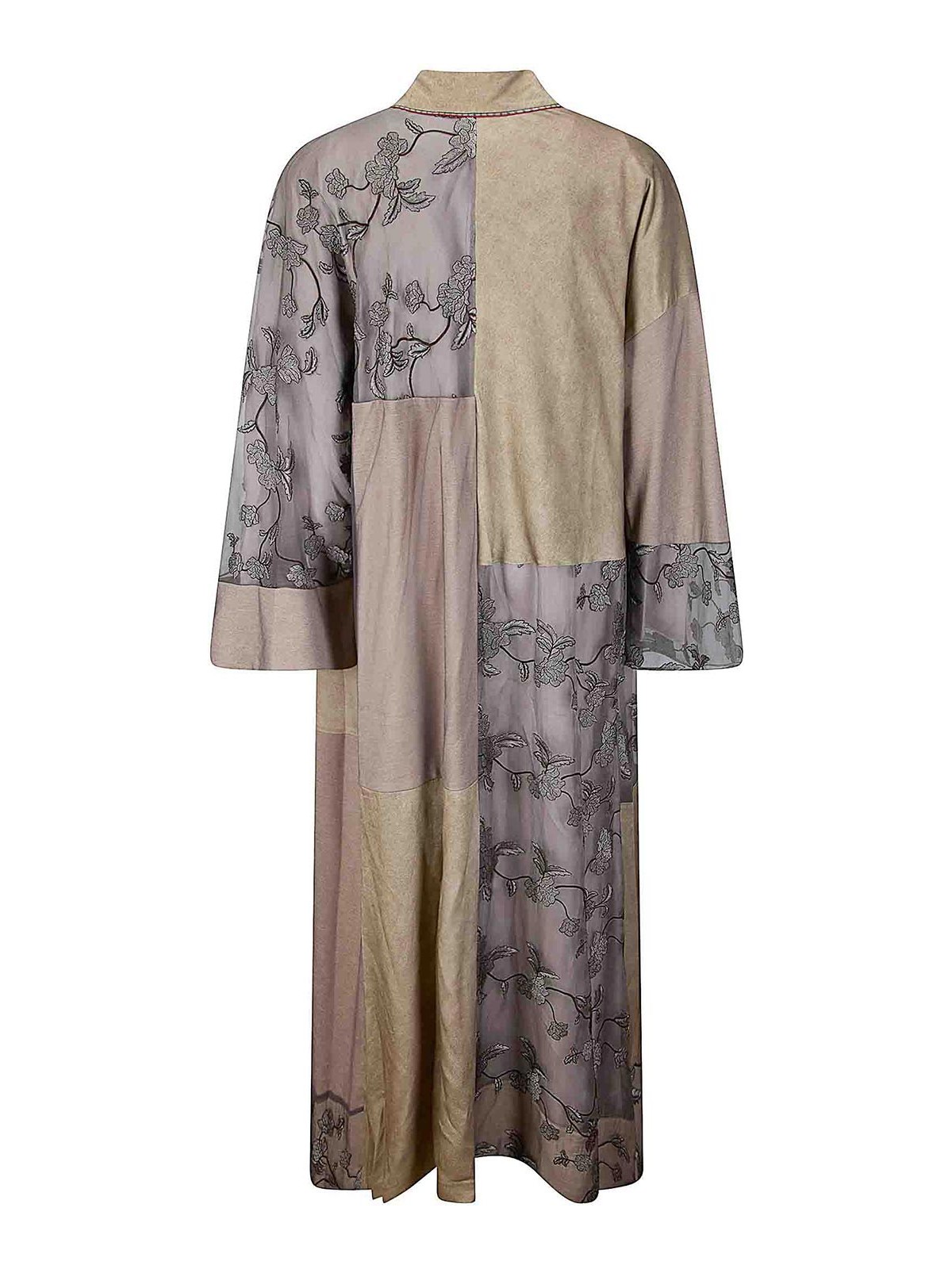 Langes Wickelkleid mit Stickerei und Stoffschichten, kontrastierenden Ärmeln, elegantes Design.