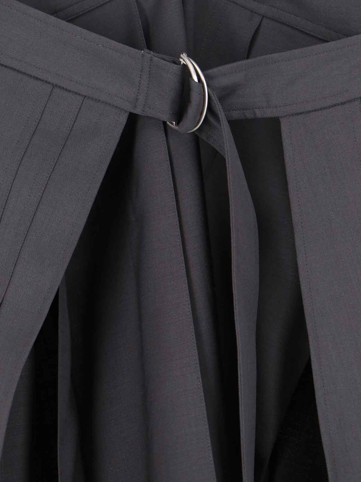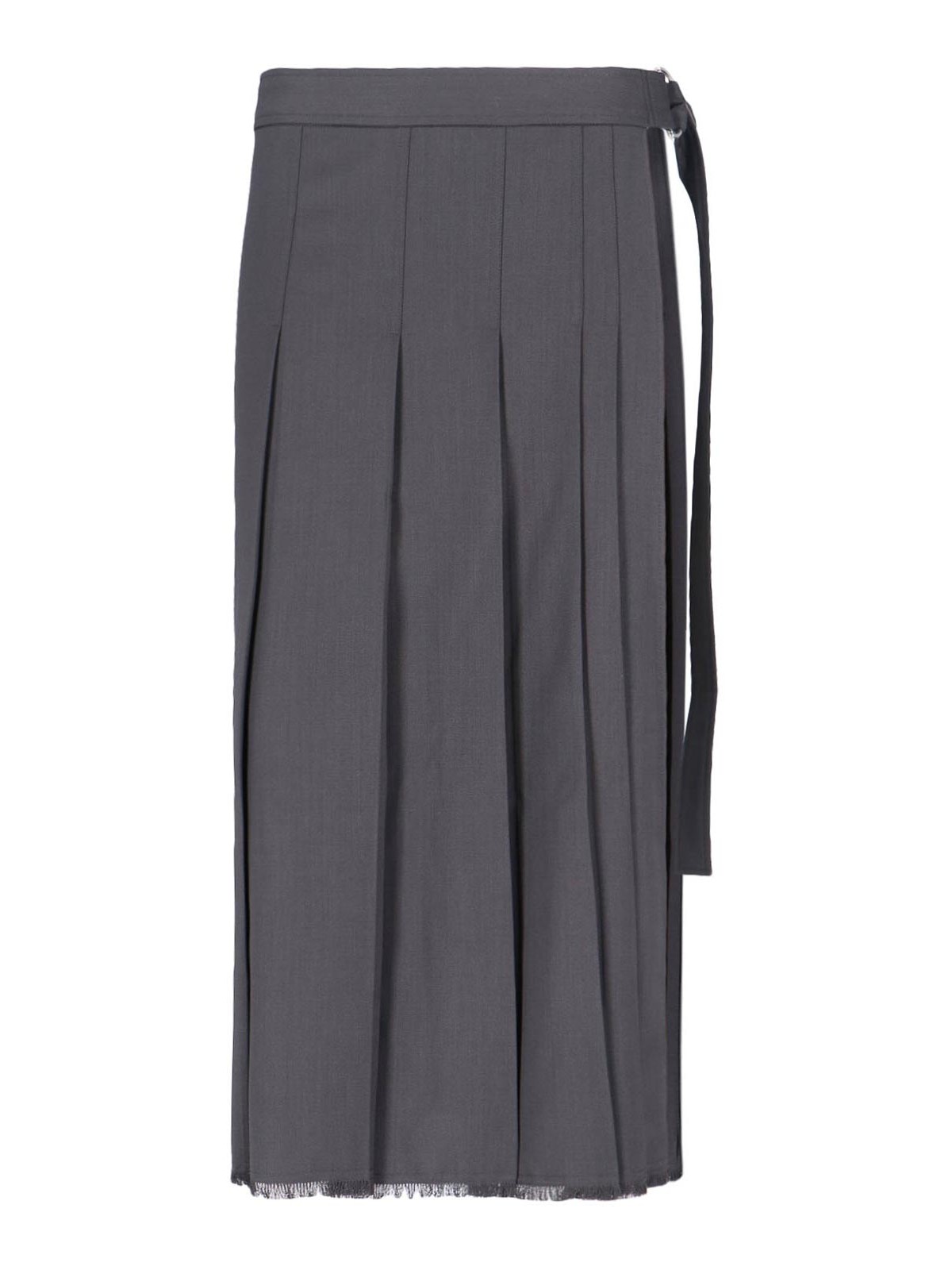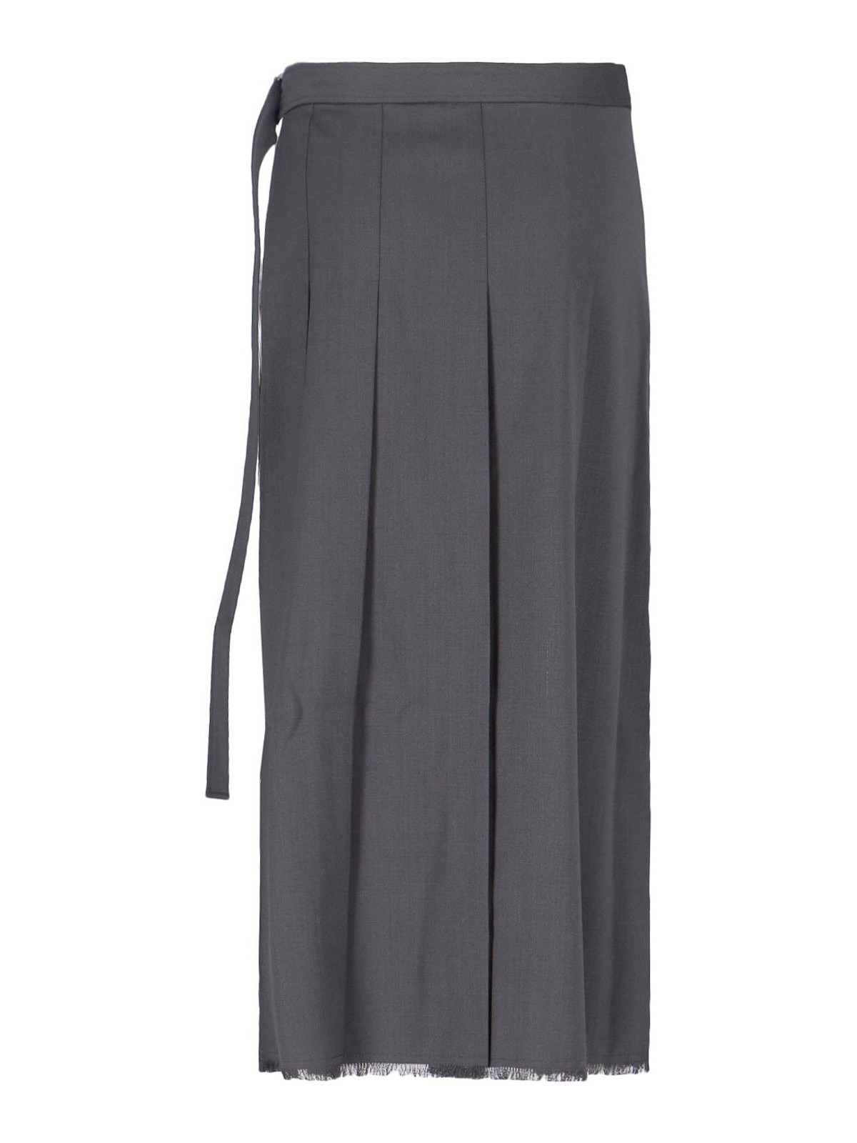 Livr Midirock aus Wollmischung, Grau, hohe Taille, plissiertes Design, verstellbarer Gürtel an der Taille, Fransen an der Unterseite, gerader Saum.