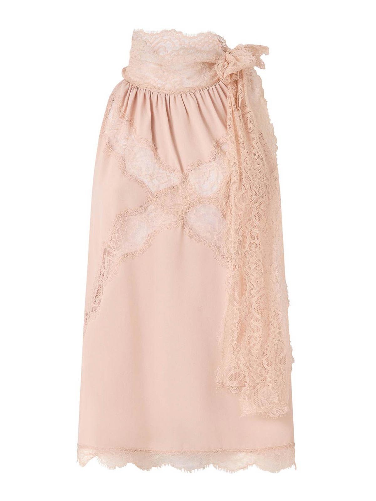 Mandarancio-Midirock aus hellrosafarbener Baumwolle mit Spitzendetail, Bindeakzenten und Muschelsaum von pinko. Er zeichnet sich durch eine fließende Silhouette und einen zarten letzten Schliff aus. Ideal für sommerliche Outfits, lässige, schicke Styles oder besondere Anlässe. Dieser Rock vereint feminine Eleganz, Komfort und zeitgemäßes Design