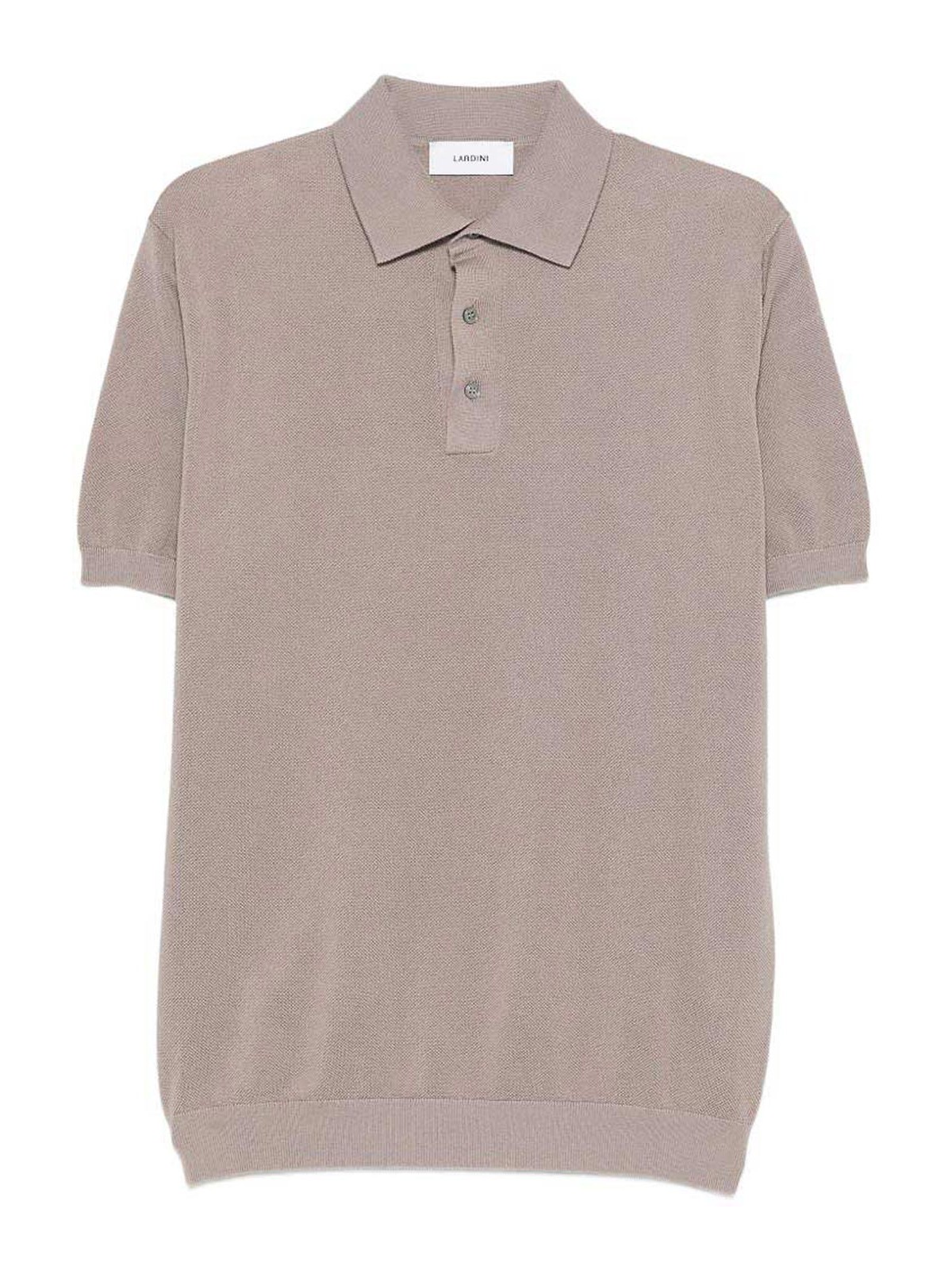 Beiges kurzärmliges Poloshirt aus Baumwolle von Lardini mit klassischem Polokragen, gerippten Ärmelabschlüssen und geripptem Saum. Dieses vielseitige Polo kombiniert italienische Handwerkskunst mit zeitgemäßem Komfort und eignet sich perfekt für lässige, schicke Outfits oder moderne Alltagslooks. Das klare Design und die gerippten Details verleihen jeder Garderobe subtile Raffinesse