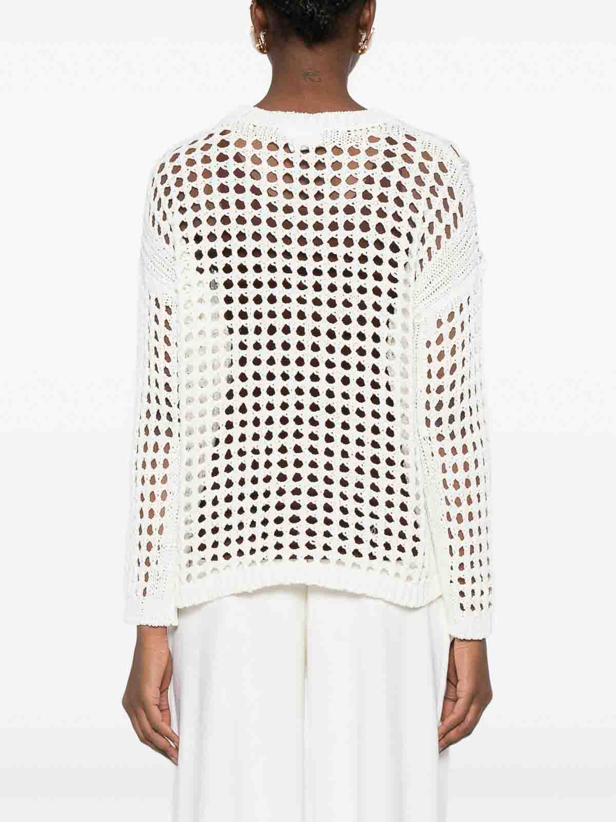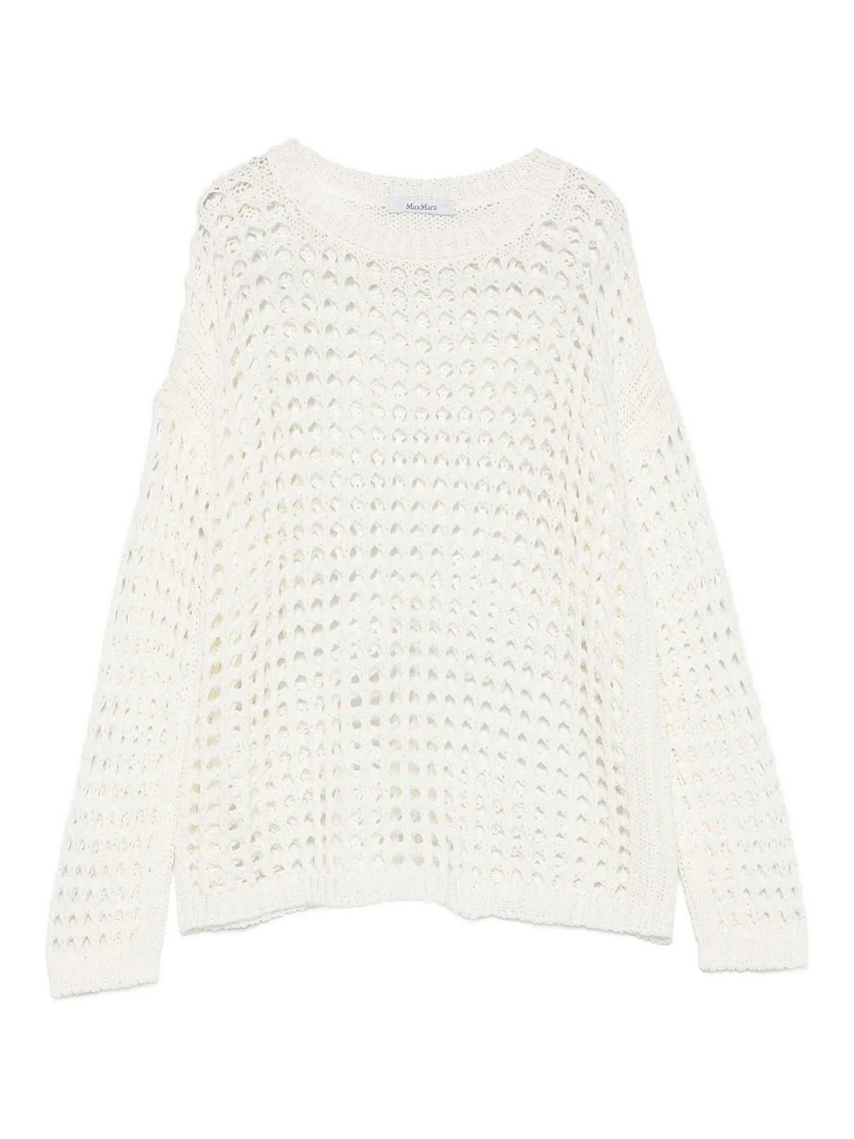Max Mara: Strickpullover mit Rundhalsausschnitt - Rundhalspullover - Creme