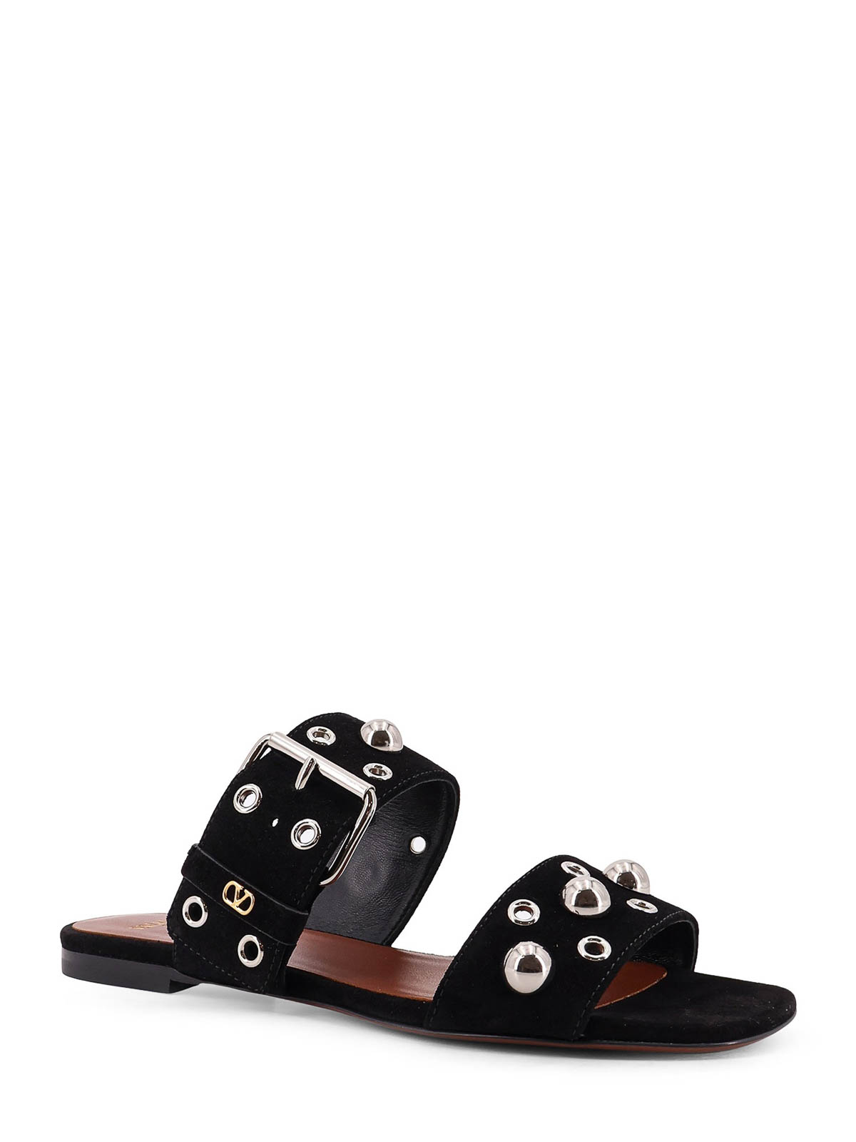 Abgerundete Spitze, verstellbarer Riemen mit.mes tallschnalle, Nietendetail, Ledersohle, hergestellt in Italien, Veloursleder.