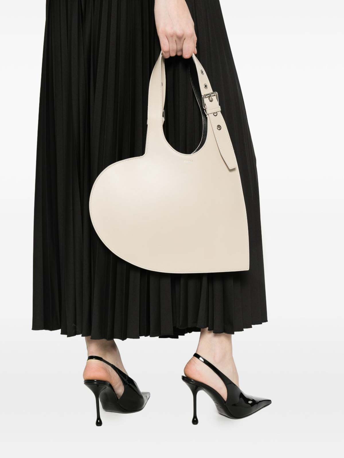 Die herzförmige Schultertasche aus beigem Leder von Coperni zeichnet sich durch ein kühnes, skulpturales Design aus, das modernen Stil mit alltäglicher Funktionalität verbindet. Sie ist mit einem verstellbaren Griff, einem Schnallenverschluss und raffinierten Ösendetails ausgestattet und spiegelt die moderne und minimalistische Ästhetik der Marke wider. Kompakt und doch aussagekräftig, ist sie ein herausragendes Accessoire, das sowohl lässige Looks als auch raffinierte Outfits mit einem unverwechselbaren, modischen Touch aufpeppt.