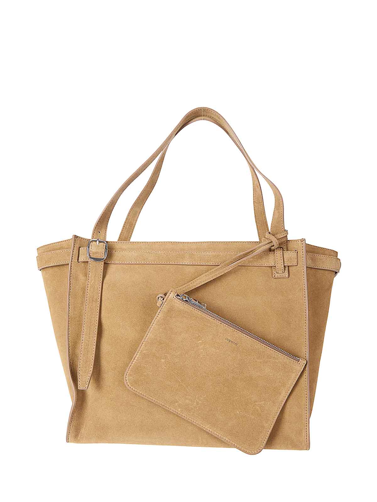 Cabas-Tasche mit Gürtel, verstellbaren Schultergurten mit Schnalle, Druckknopfverschluss am Hals, aufgedrucktem Logo, Faltpaneelen und aufgesetzten Taschen auf der Vorderseite.