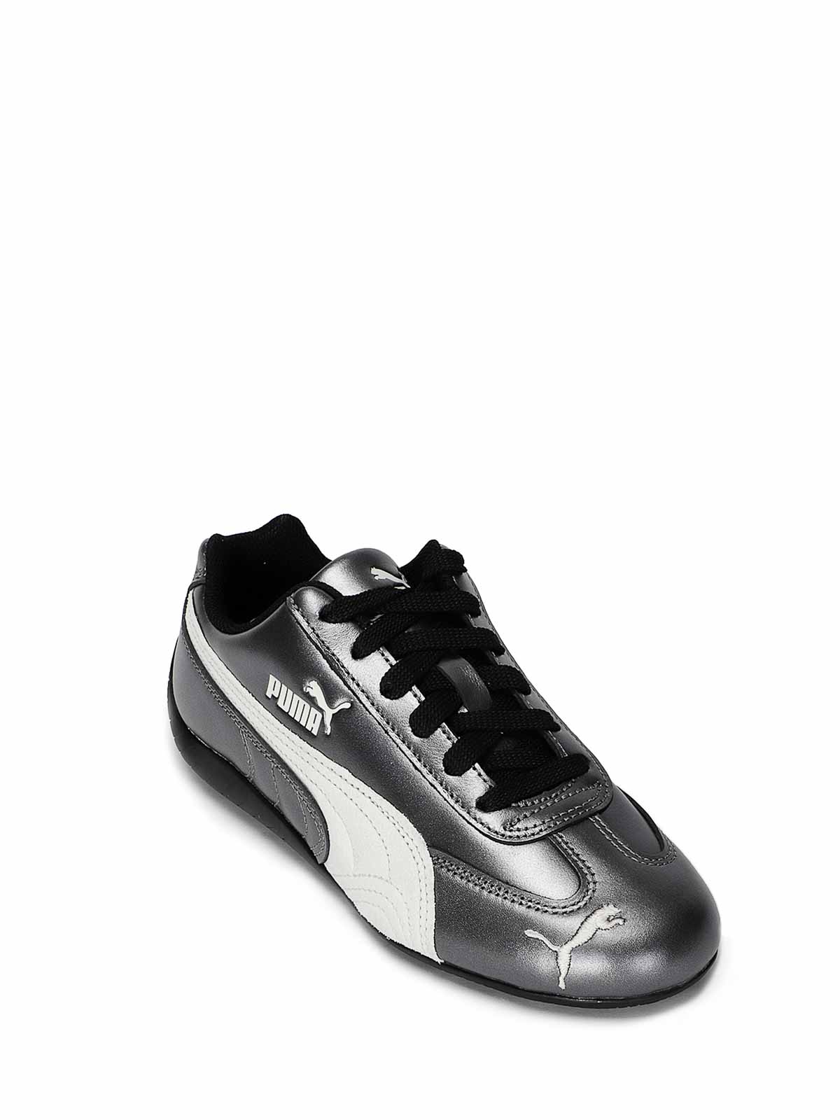Speedcat-Sneaker aus Metall, kontrastierender Schnurrbart aus Veloursleder mit Nähten, gesticktes Logo auf der Vorderseite, kontrastierende schwarze Schnürsenkel.