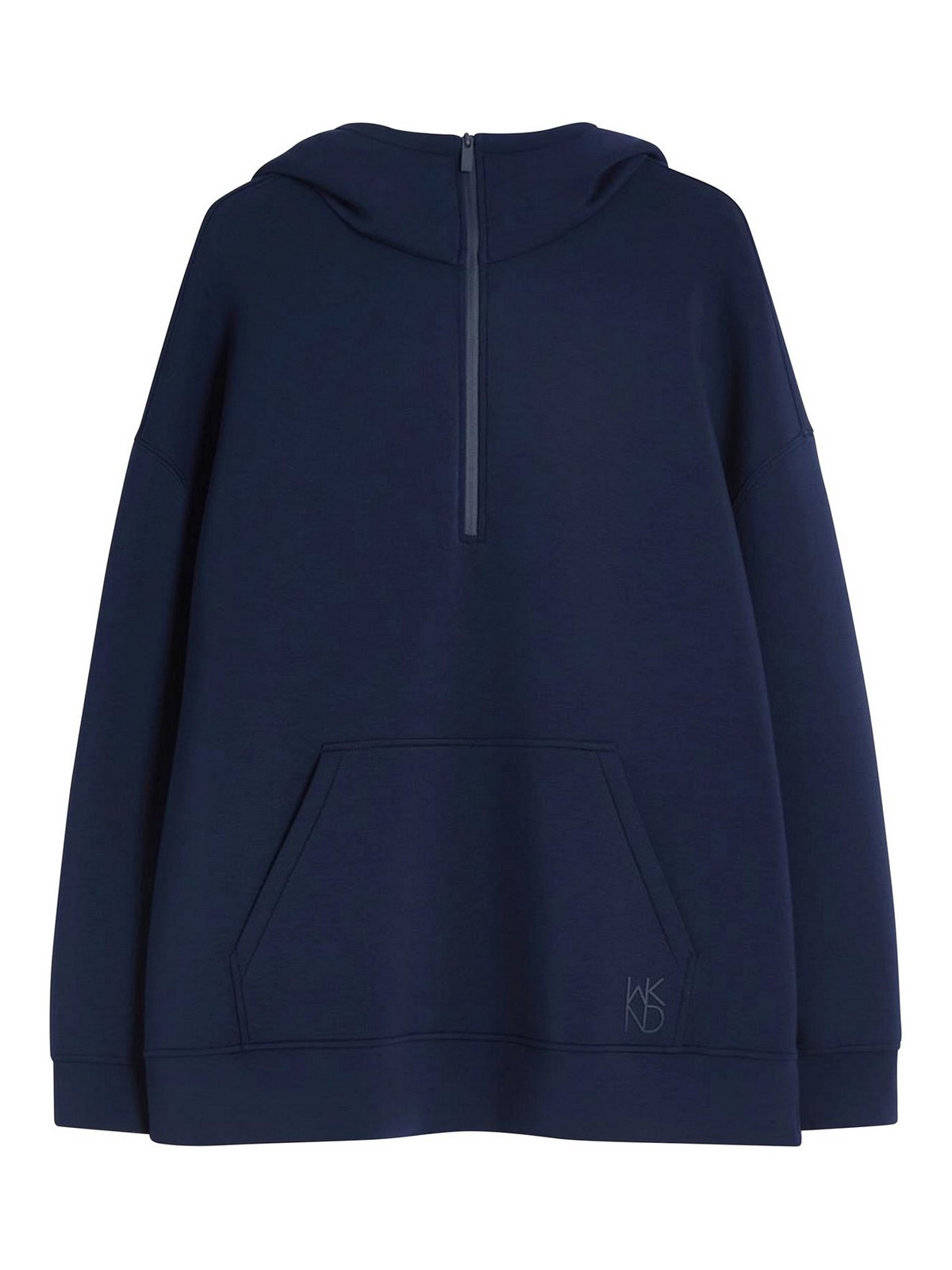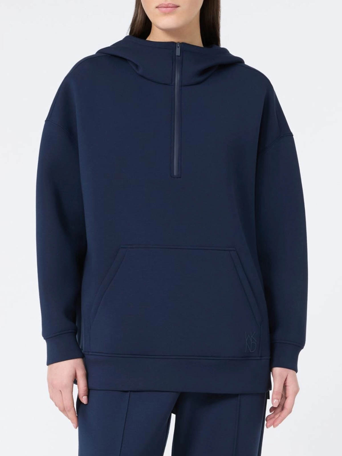 Langes Sweatshirt mit Kapuze und verstellbarem Kraterkragen mit kleinem Frontreißverschluss.