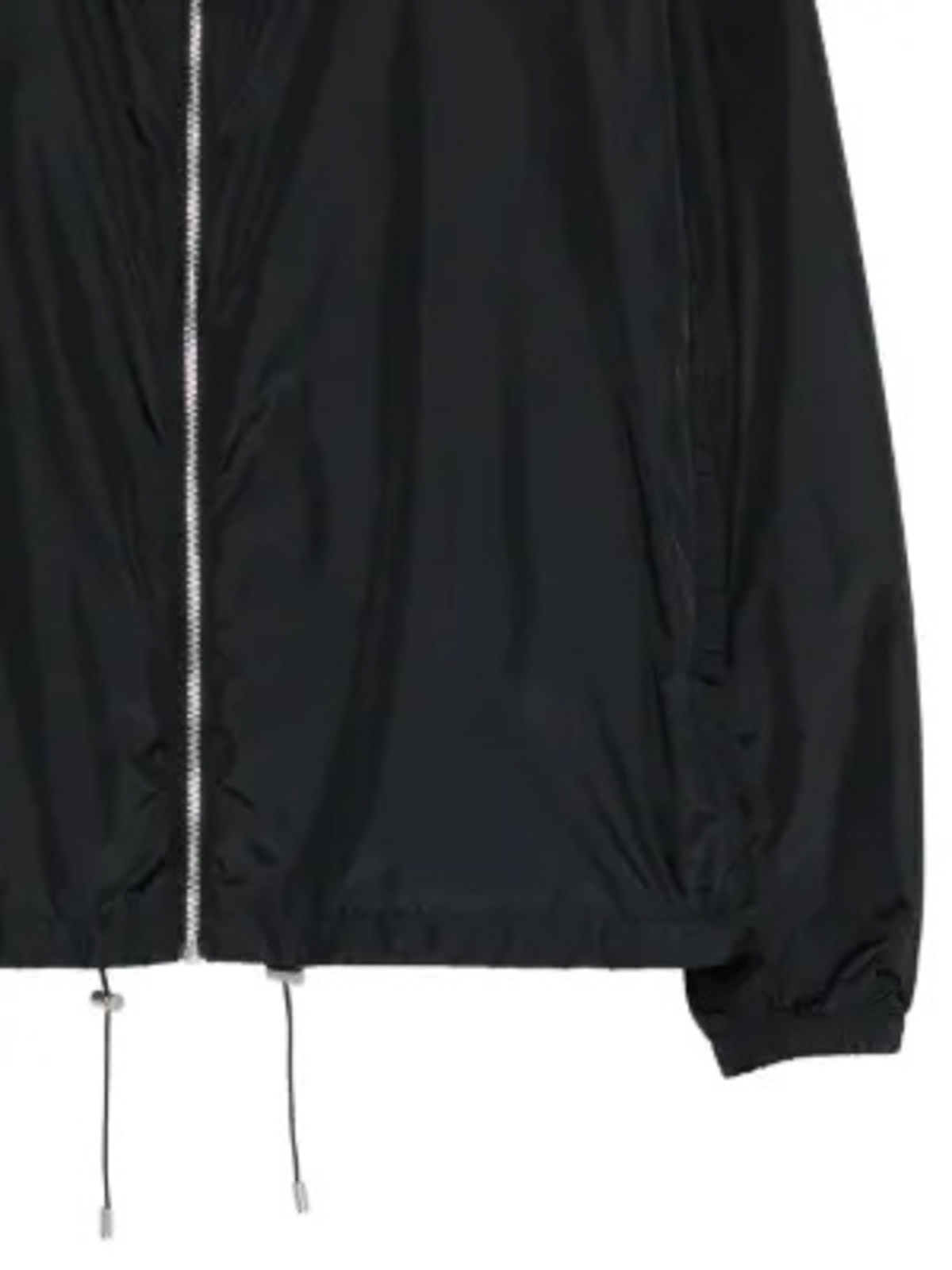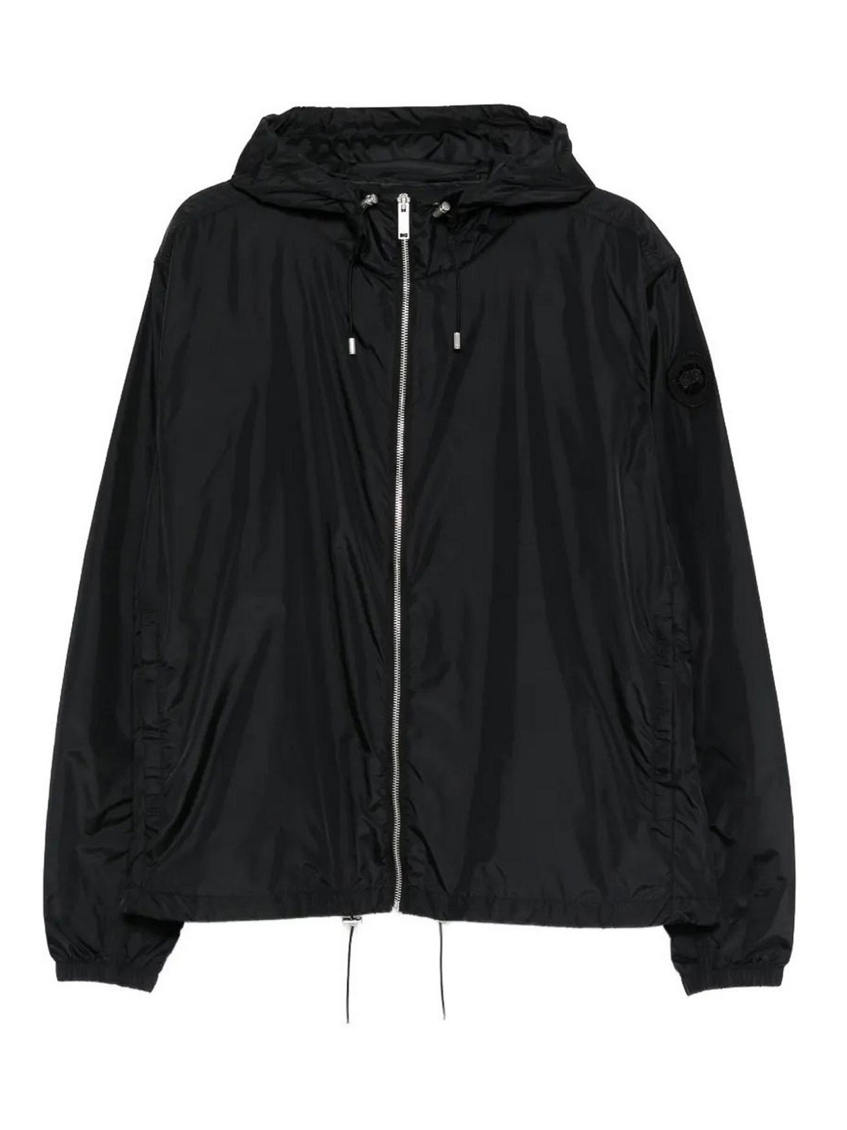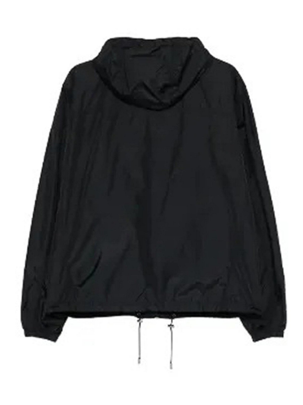 Schwarzer Designer mit Kapuze und Kordelzug am Saum ---