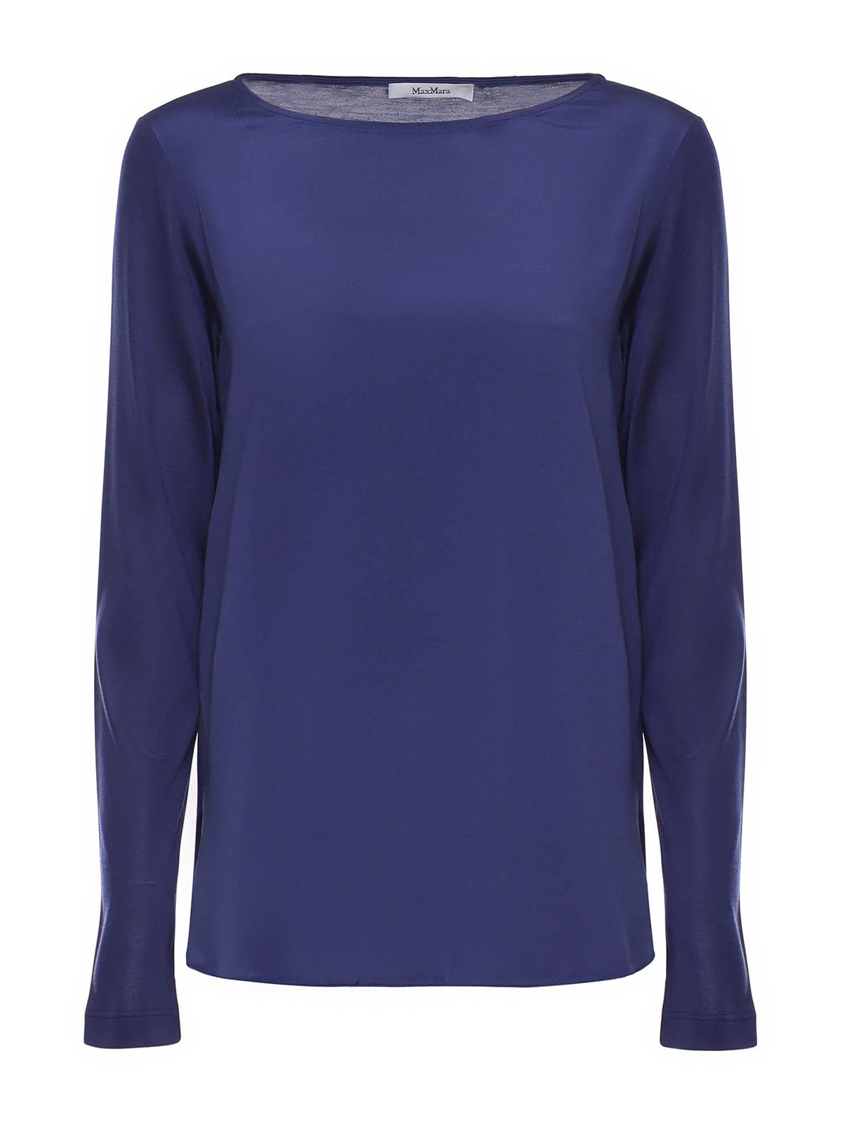 U-Boot-Ausschnitt, lange Ärmel, Seitenschlitze, abgebildete Größe ist M, Hergestellt in Italien, Designerfarbe: Bluette