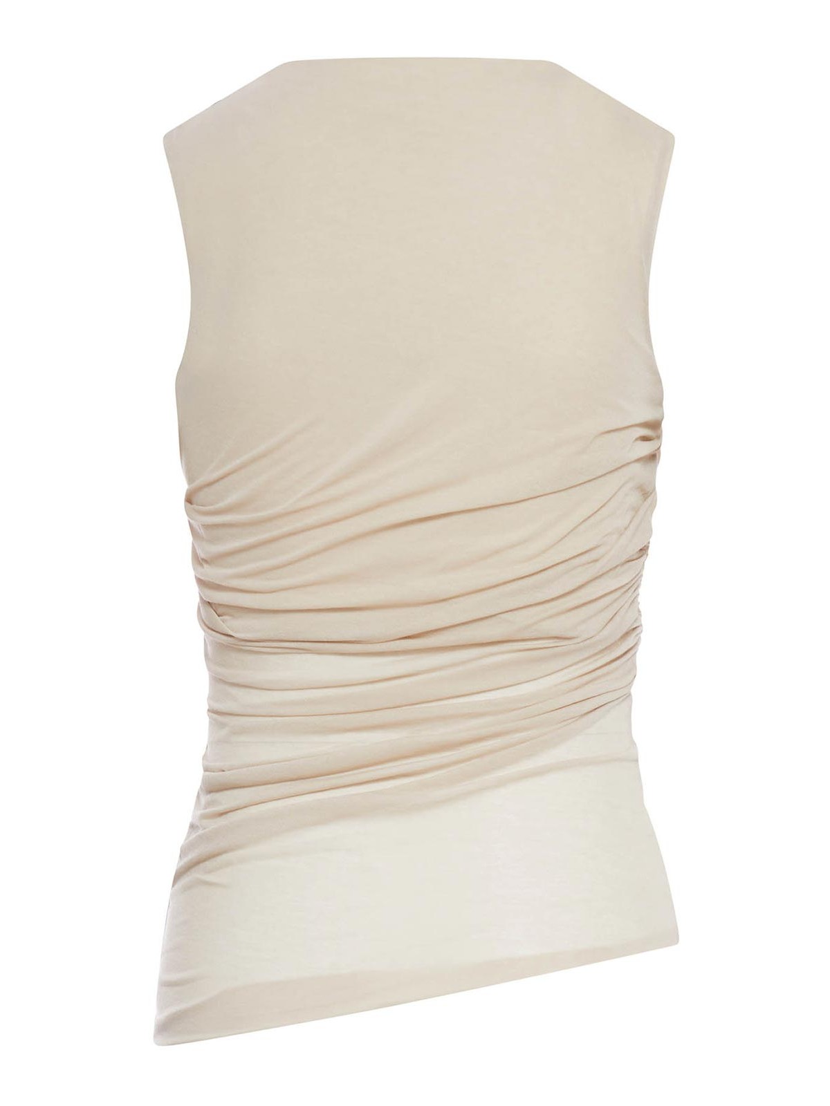 Top aus extrafeinem Baumwollkrepp, körpernah geschnitten, ärmellos, weiter Halsausschnitt, drapierter Körper, gefütterte Brust, Farbe: Masto