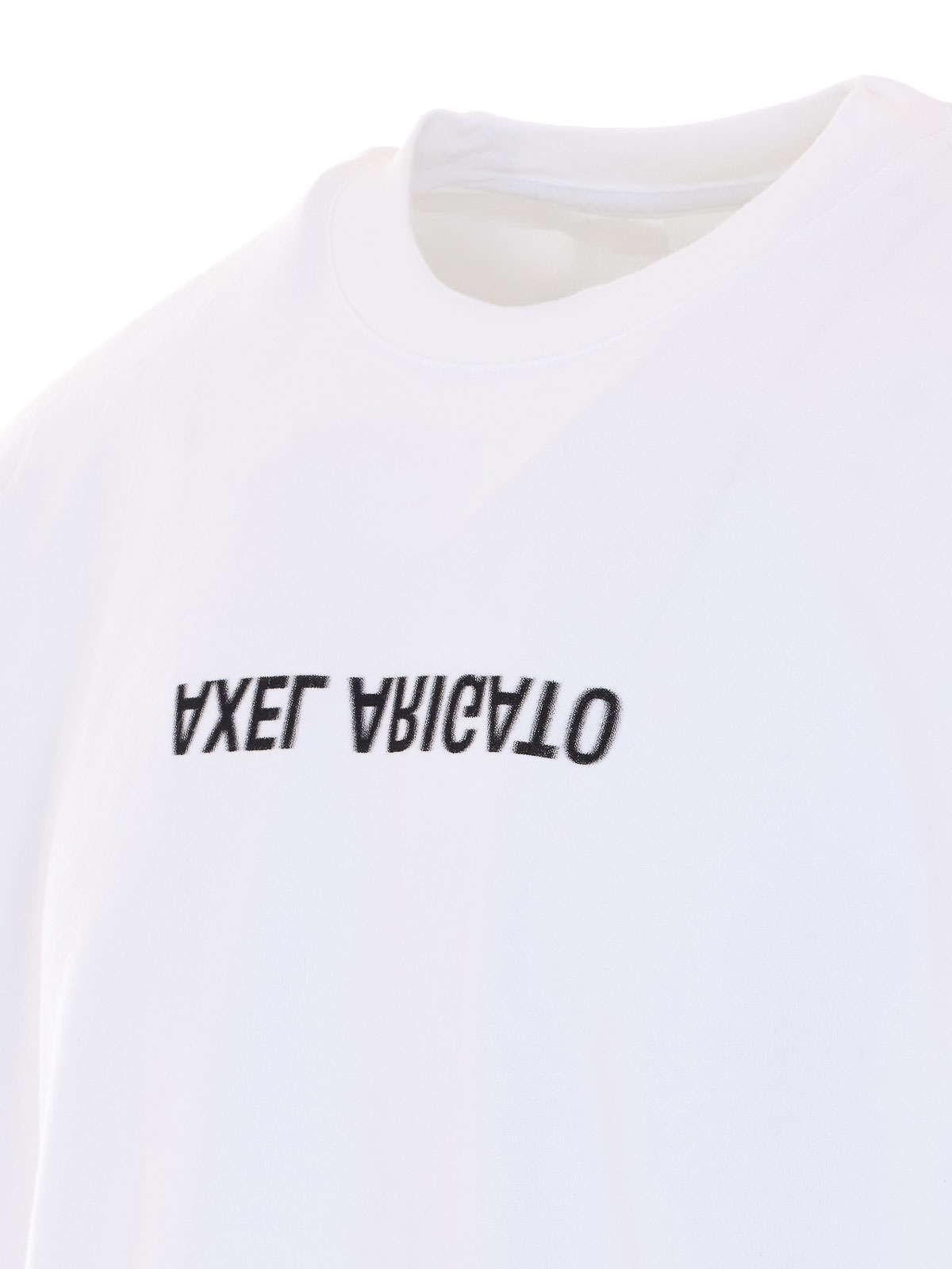 Weißes Distort Wash-T-Shirt von Axel Arigato, Rundhalsausschnitt, Spiegeldruck-Logo auf der Vorderseite, Oversize-Passform