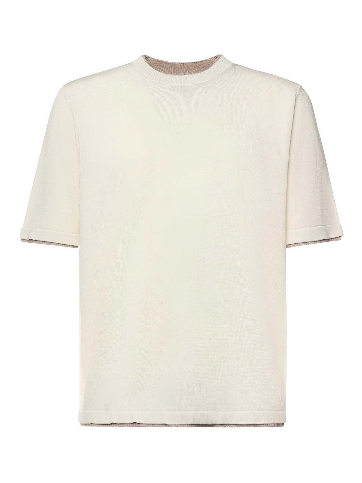 Hergestellt aus reiner Baumwolle, Rundhalsausschnitt, kurze Ärmel, gerader Saum, Hergestellt in Italien, abgebildete Größe S, Farbe: weiß, beige