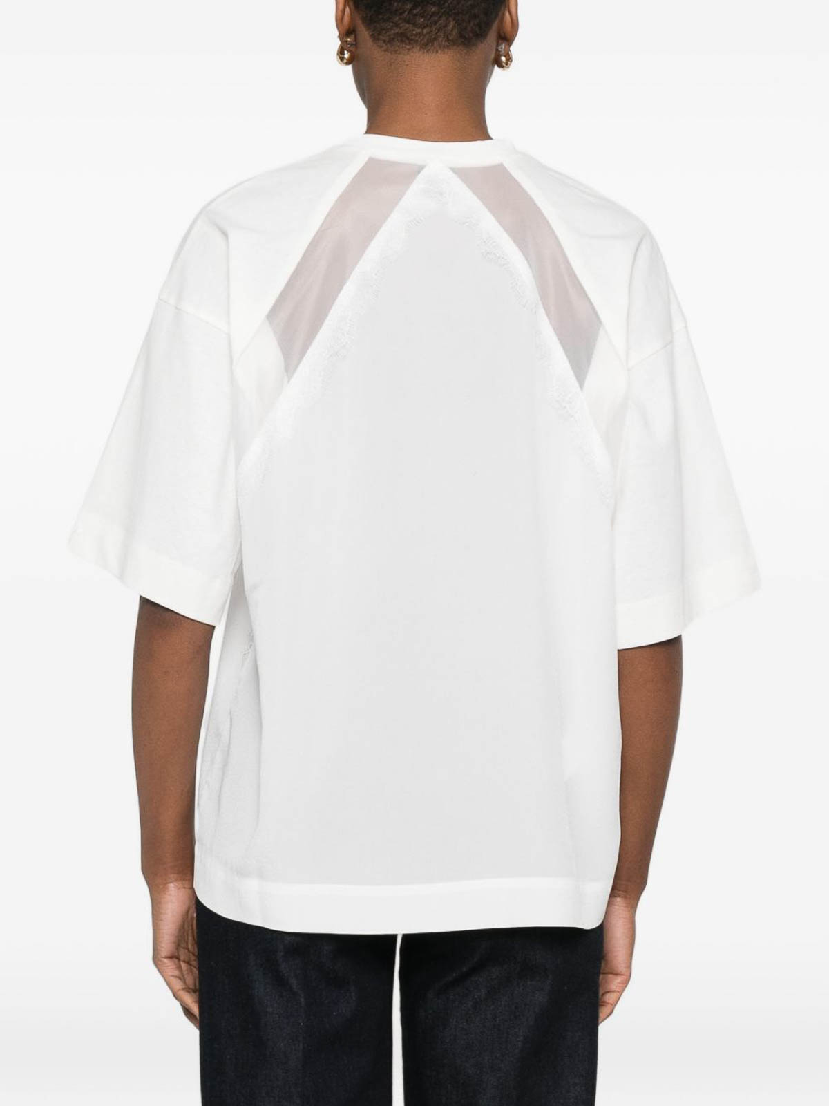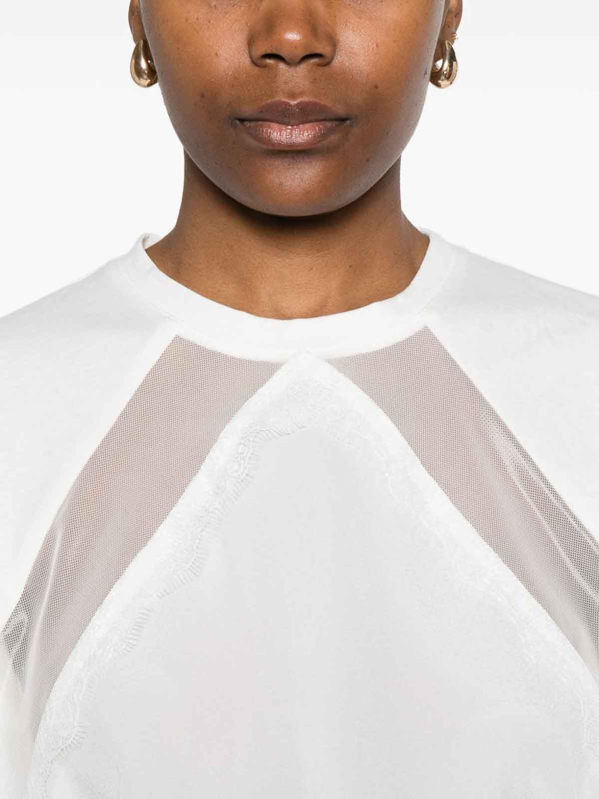 Stephanie T-Shirt aus weißer Baumwolle mit halbtransparentem Einsatz von Pinko