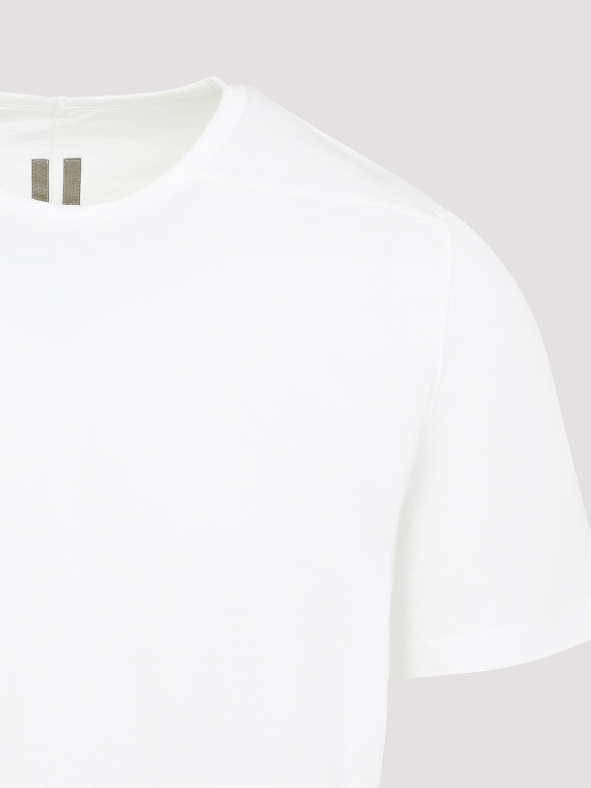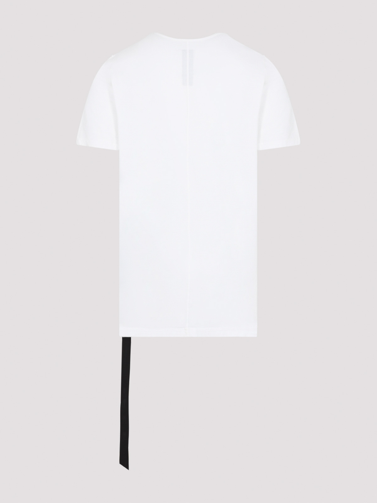 Rick Owens Drkshdw milchweißes Level-T-Shirt aus Baumwolle. T-Shirt aus reiner milchweißer Baumwolle, Rundhalsausschnitt, kurze Ärmel, seitliche kontrastierende schwarze Träger, gerader Saum, tonale Nähte.