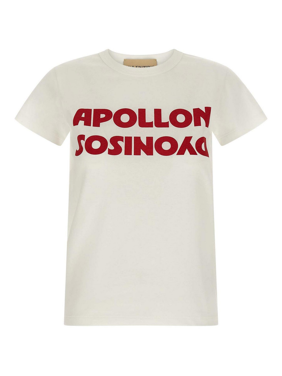 Baumwoll-T-Shirt mit Aufdruck „Apollon/Dyonisos“ auf der Vorderseite, Rundhalsausschnitt, kurze Ärmel.