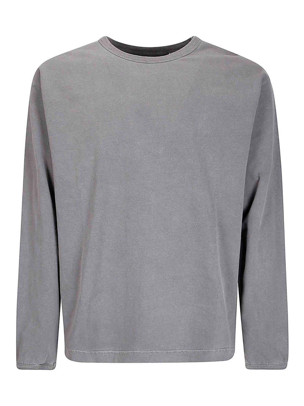 Dickes Baumwoll-Langarmshirt, runder Kragen, Seitenschlitze, Ärmel mit Rippbündchen.