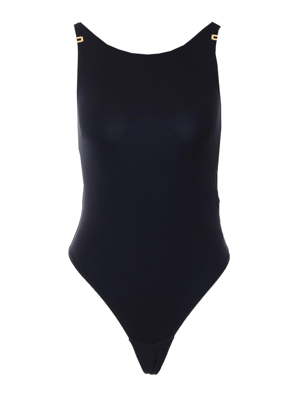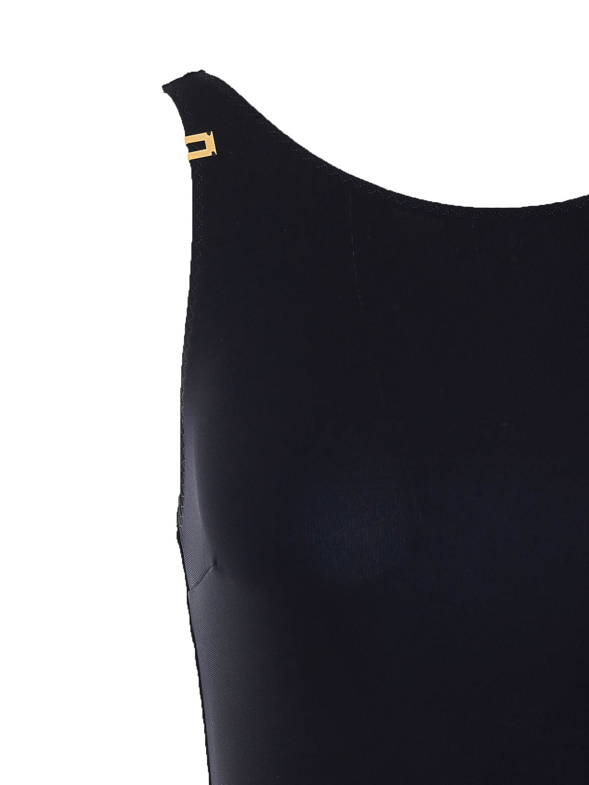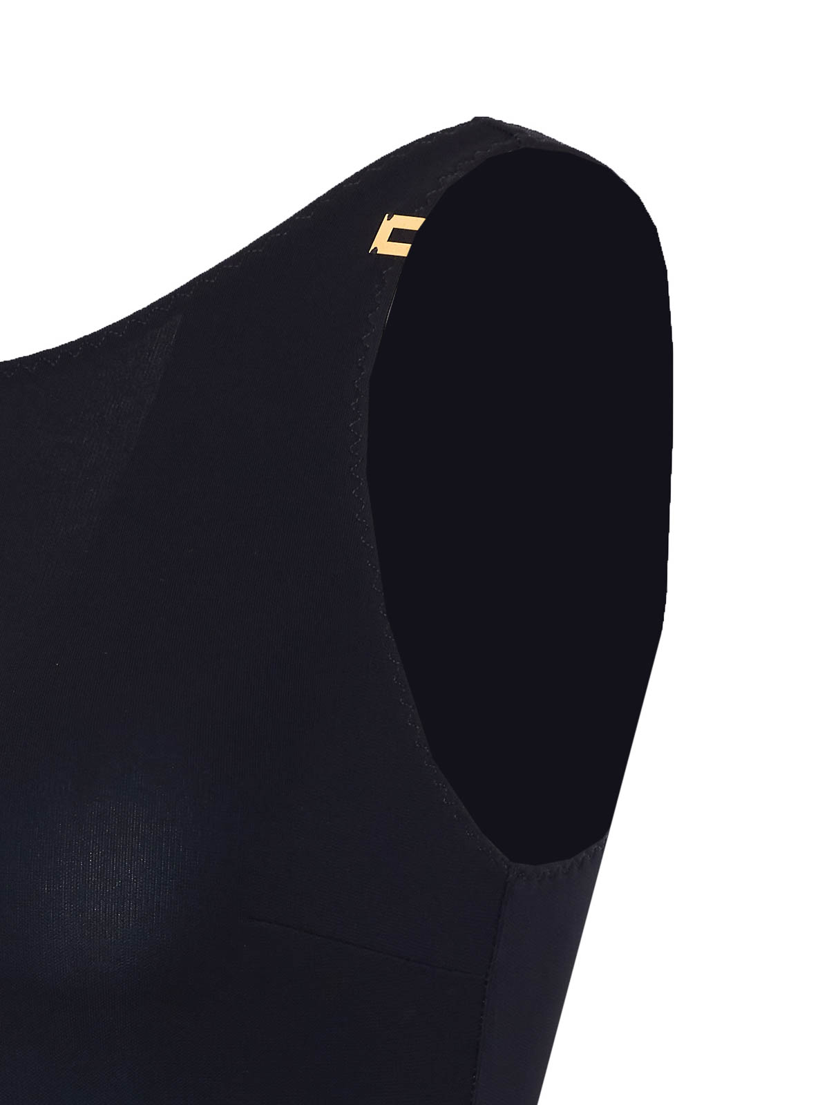 Elisabetta Franchi schwarzer Body, ärmellos, Mini-Plakette mit Logo