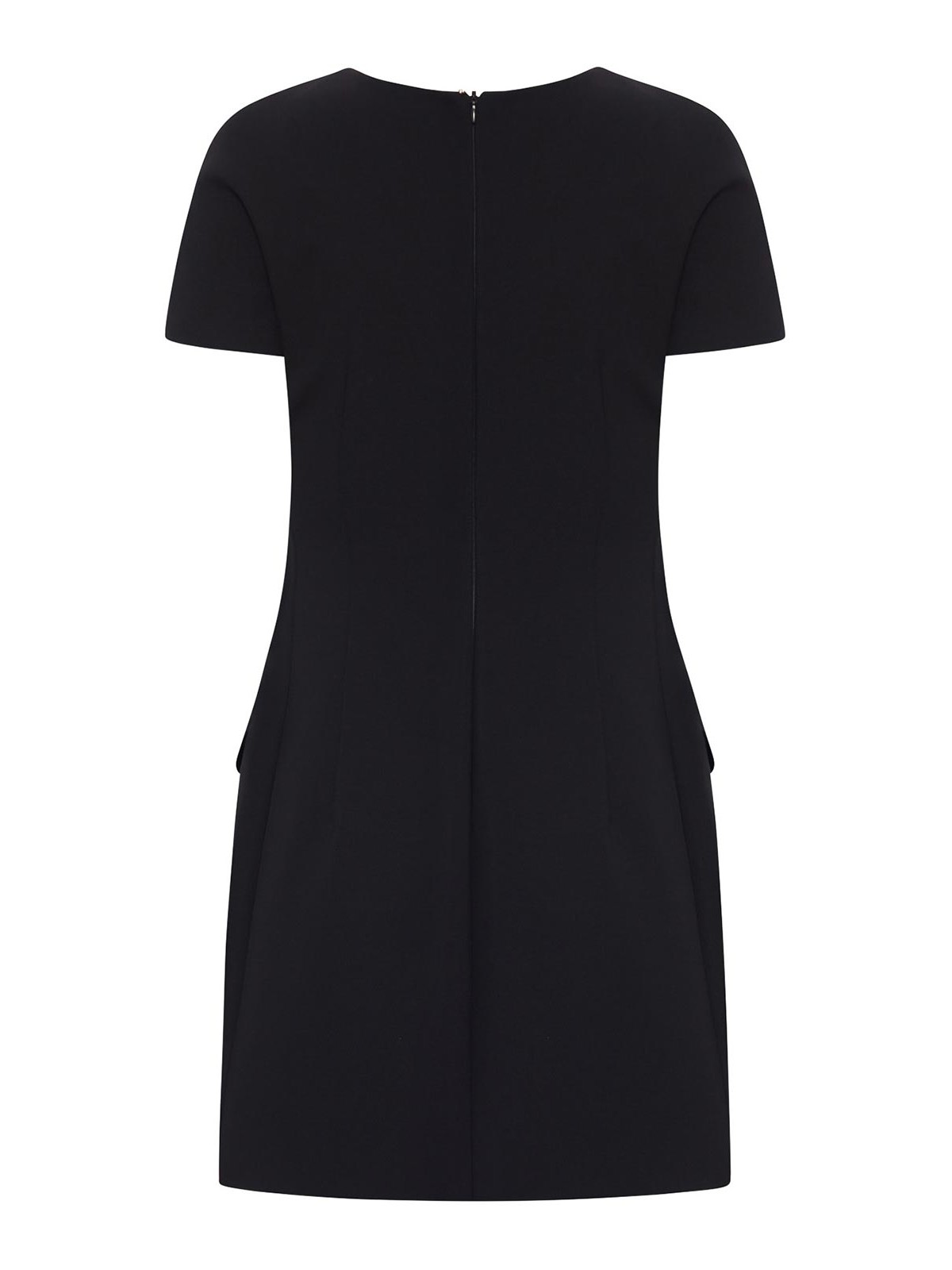 Sanduhrförmiges Kleid, aus Crêpe-Jersey, Rundhalsausschnitt mit rückseitigem Reißverschluss, abgerundete Hüften, Paten- und Leistentaschen, kurze Kimonoärmel, taillierter Körper mit Sanduhr-Silhouette, Abnäher an der Taille und hervorstehenden Hüften, reguläre Passform, Farbe: schwarz