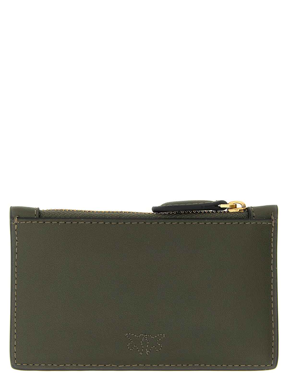 airone' silk leather card holder, metal 'love birds diamond cut' logo plaque on the front, top zip closure, polycotton lining.