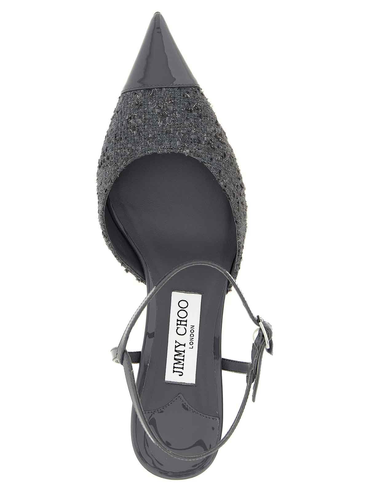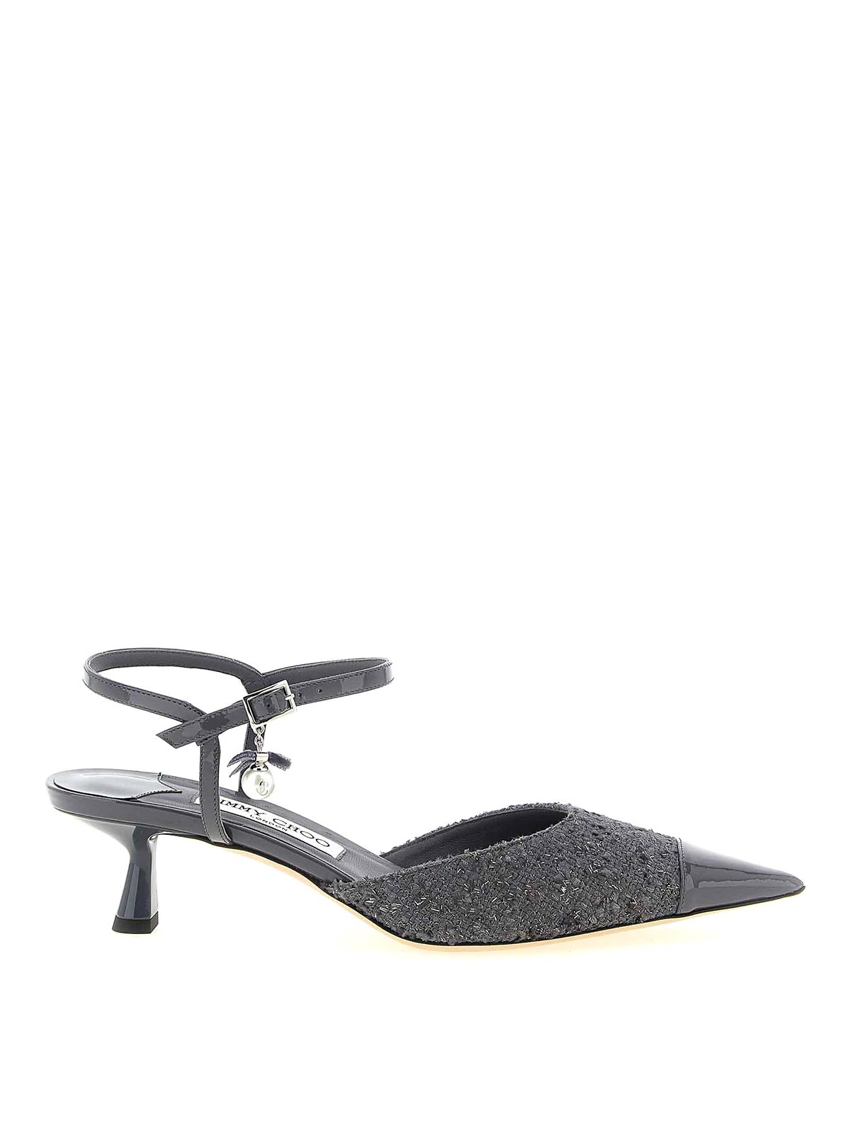 aren' patent leather and lam thread patent leather slingbacks, pointed toe, adjustable ankle strap with pearl pendant detail, sculpted heel, leather sole.