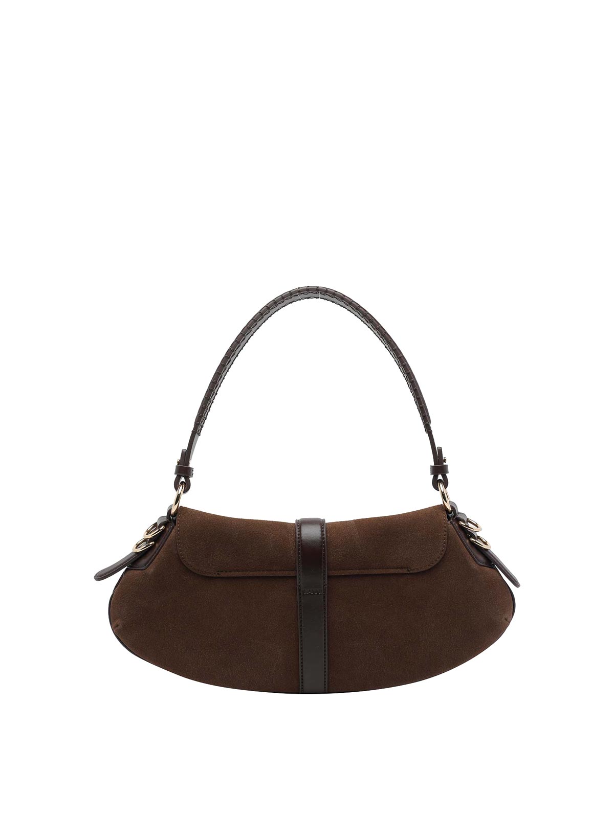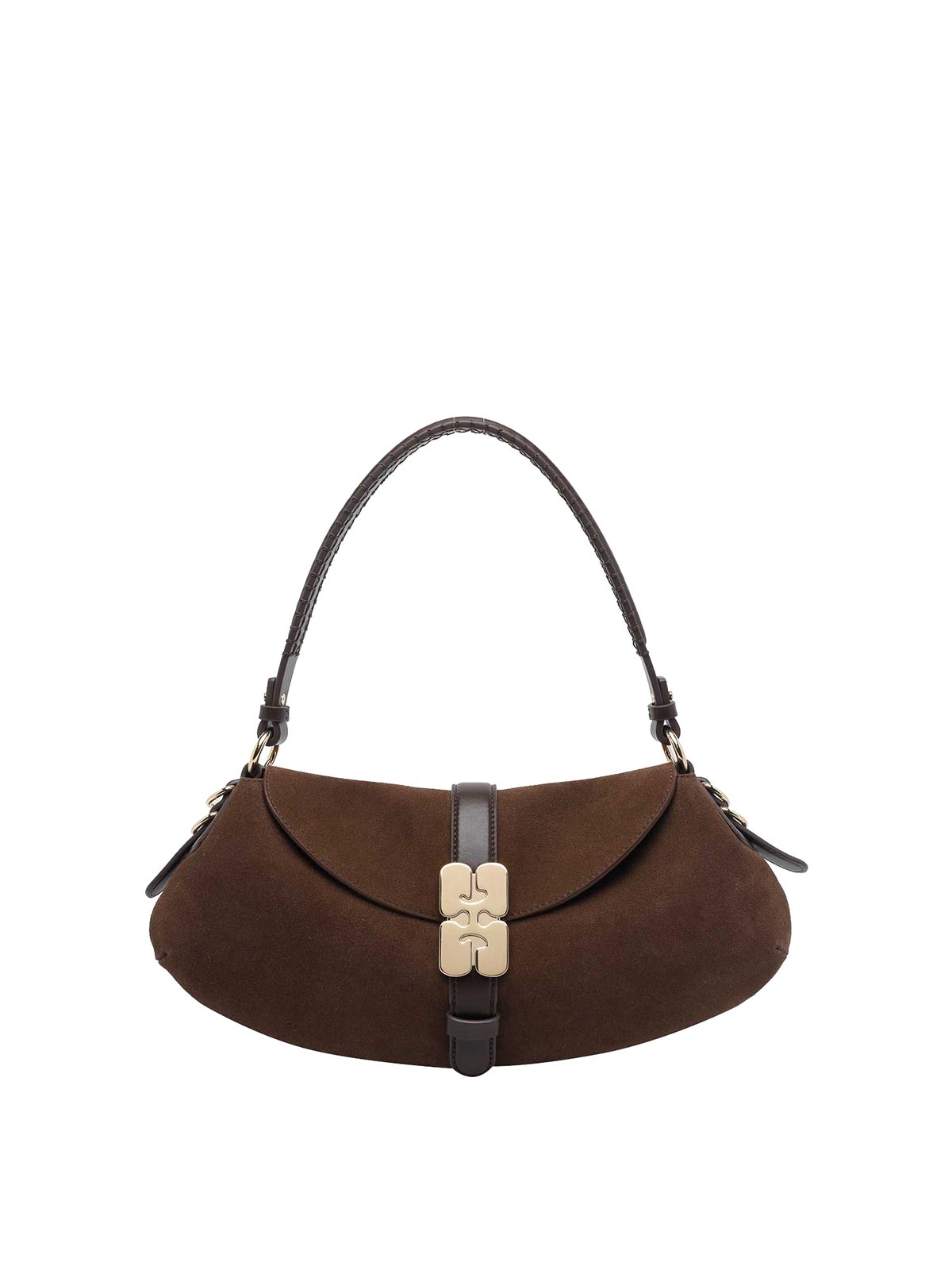 Ganni brown b-kat shoulder bag, magnetic closure, inner open pocket, removable handle, logo