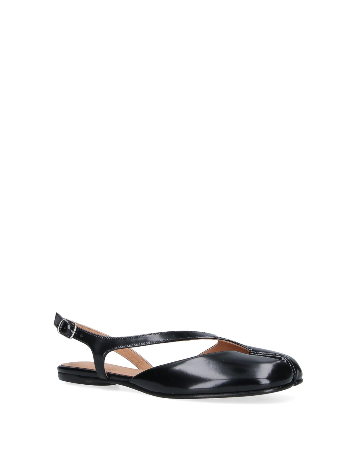 Maison Margiela tabi slingback ballerinas in black calfskin, square toe, tabi detail, adjustable ankle strap, cut-out details on the front, leather sole.