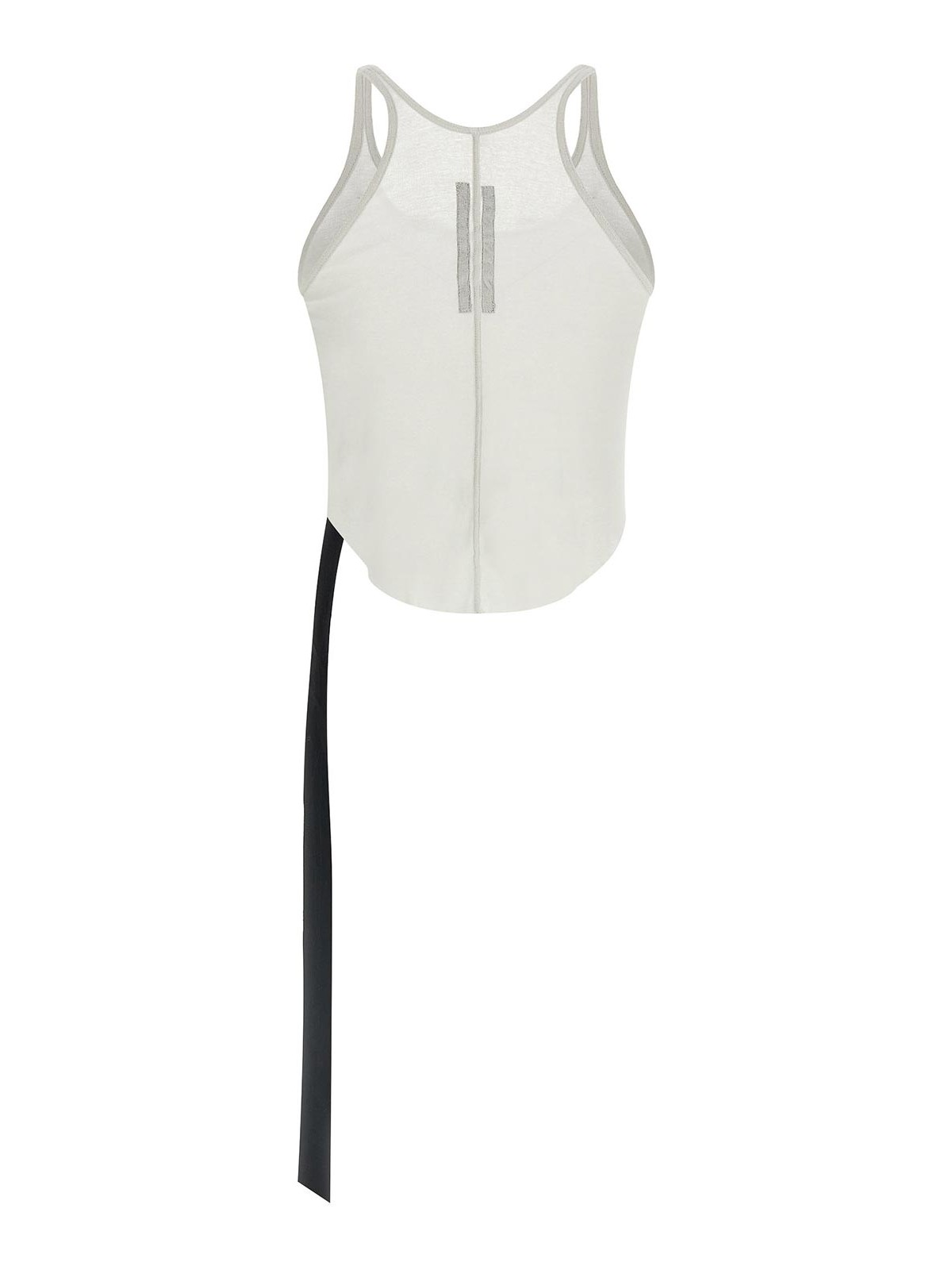 basic' tank top in semi-transparent cotton, crop model, raw cut hem and round neckline.