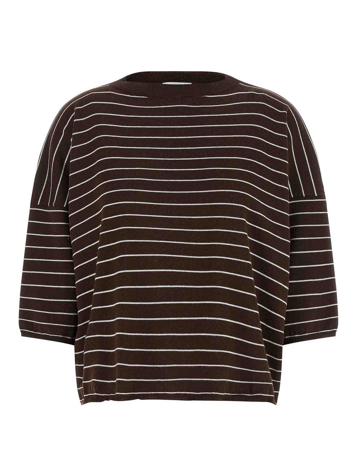 be the way' embroidery cotton and cashmere blend sweater with round neckline, 3/4 bat sleeves with dropped shoulders.