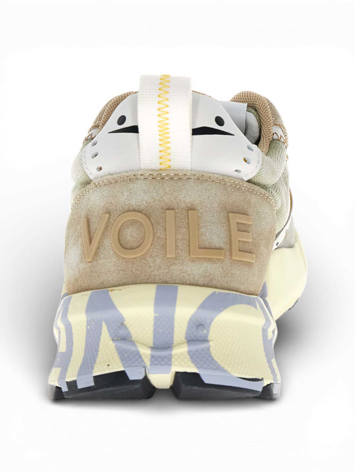 Voile blanche, club01 suede/canvas delav, sneakers in suede and canvas delav, sage green-grey-beige, sneakers with a contemporary design made with suede and canvas upper, characterized by a balanced material mix and refined details. the club01 model combines smooth leather, suede and cotton for a dynamic and versatile aesthetic. the construction features light gray suede inserts on the toe, sage green canvas side panels, beige suede rear heel with applied voile blanche logo. side details in white leather with contrasting mustard yellow insert. Fabric tongue with applied label. Tone-on-tone flat laces. the oversized sole in ivory tones features contrasting maxi voile blanche lettering on the side, with black rubber tread for greater grip., faded suede, leather and canvas upper, side leather inserts with contrasting detail, logoed rear heel counter, flat laces, oversized sole with side lettering, rubber tread.