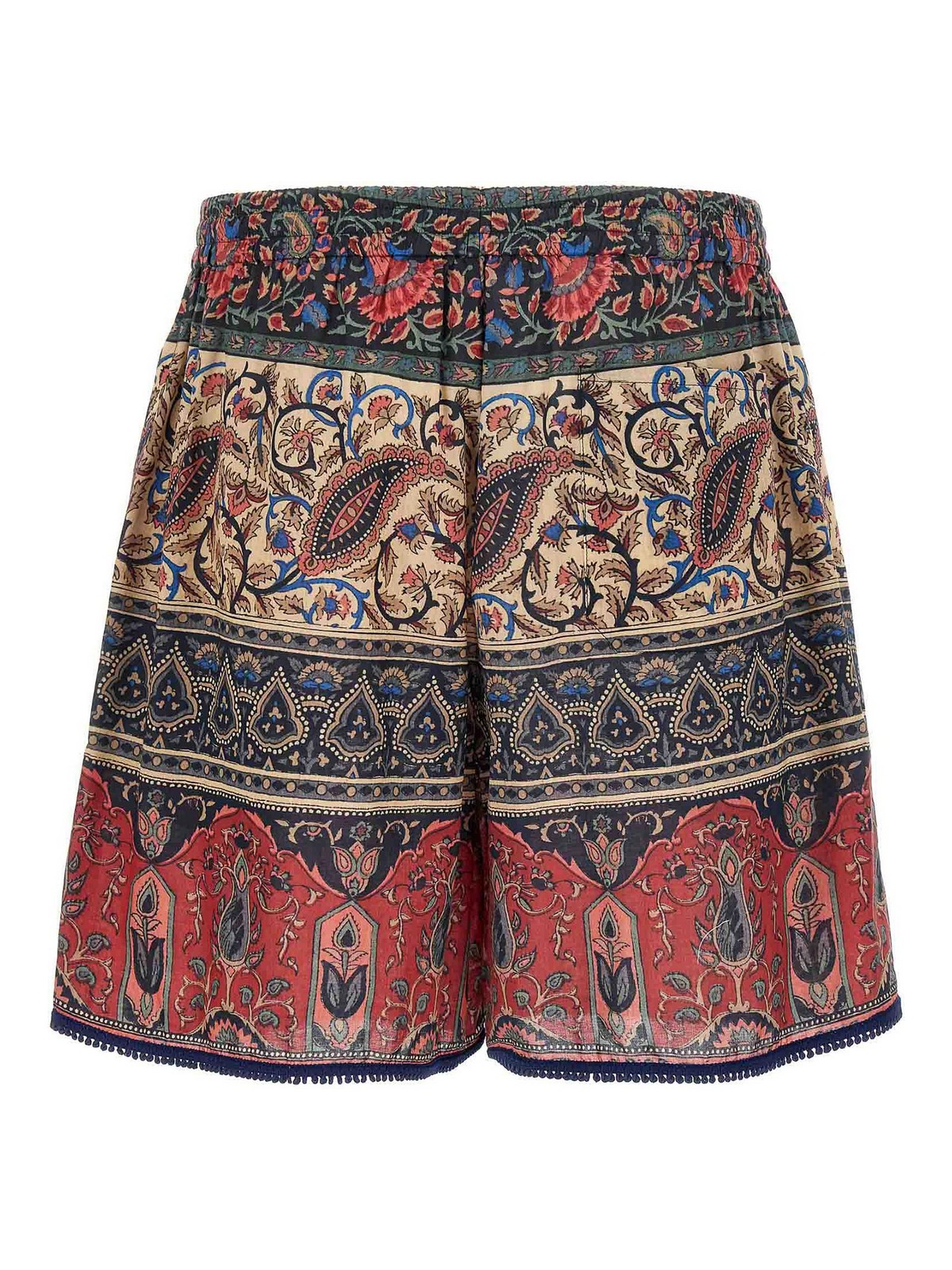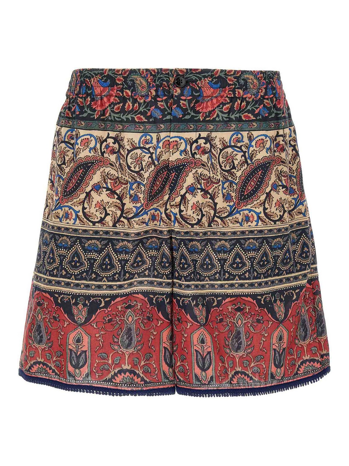 voyage imaginaire' print cotton bermuda shorts, zip and front button closure, adjustable drawstring elastic waistband, pockets, trimmings on the hem.